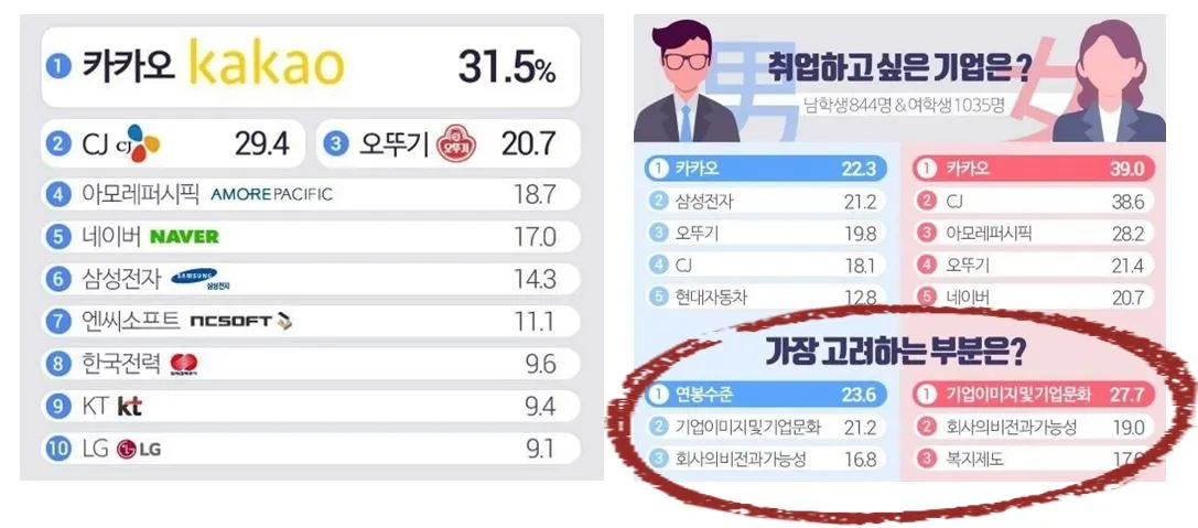 시가총액 상위 100대 기업(9월 18일 기준) 대상, ‘가장 취업하고 싶은 기업’을 취업포탈 잡코리아가 전국 4년제 대학(원)에 재학 및 휴학 중인 대학생 1,879명을 대상으로 설문조사를 실시한 결과(중앙일보 게시)입니다.
