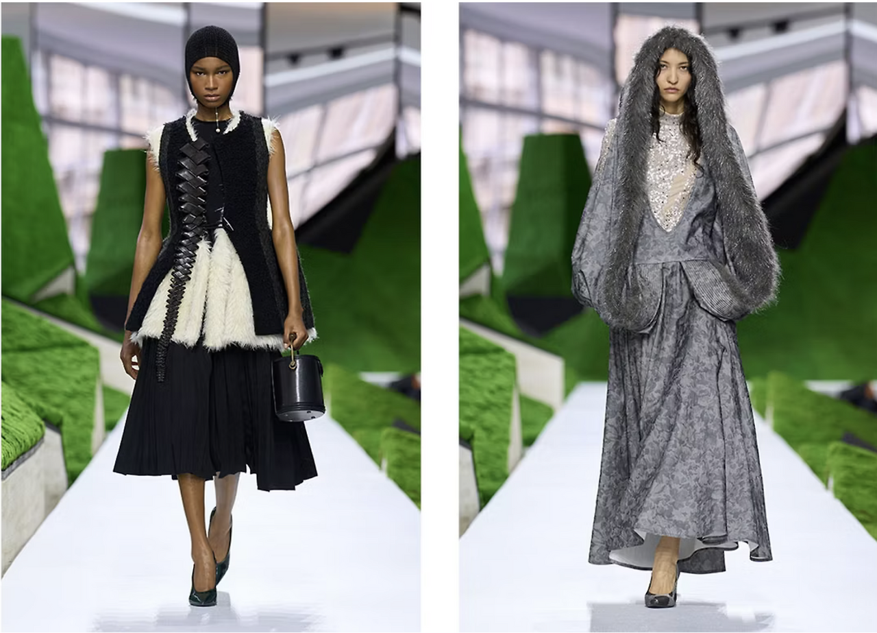여러 시즌 동안 미니멀리즘과 ‘조용한 럭셔리’가 지배해온 이후, 일부 럭셔리 브랜드들은 패션을 다시 사회적 차별화 수단으로 재정립하기 위해서 화려한 로코코 스타일을 꺼내고 있습니다. 럭셔리 시장이 대중화되면서 포화 상태에 다다른 것에 대응하여 이러한 실루엣은 즉각적인 시각적 차별성을 만들어냅니다. 이는 소셜 네트워크가 트렌드 생성과 소멸을 끊임없이 가속화하는 이미지 경제 속에서 중요한 균형을 담당하는 역할을 할 듯 합니다. 럭셔리 및 프리미엄 시장에서 높이 평가되는 공방 장인 기술(savoir-faire) 가치를 강조하고 더 나아가 실루엣이 복잡해지면 경쟁이 치열한 환경에서 디자인 모방이 더욱 어려워질 수 있습니다.