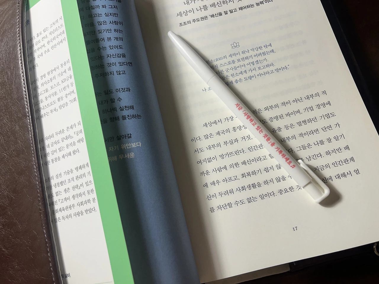그러다 앞에 있는 통 안에 들어있는 펜 하나에 눈이 갔다. 펜에는 [지금 ‘사랑하고 있는 것들‘을 기록하세요]라는 문구가 적혀있었다. 지금 나는 그 펜을 잡고, 사랑하고 있는 것들이 아닌 ’ 사랑하게 될 순간‘을 기록하려고 한다.