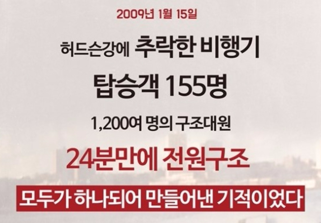 의 이야기 이다. 2009년 1월 15일 오후 3시 30분쯤 이륙 직후 새떼와 충돌하여 엔진에 불이 붙으면서, 센트럴 파크 인근 허드슨 강에 불시착한 사고이다. 이 사고는 전원 생존하면서, 허드슨의 기적(Miracle on the Hudson)이라는 이름으로 널리 알려지게 되었다. 사고가 일어남을 직감하고 그는 29년 경력을 바탕으로 속도와 수평을 조절해 비행 교본에나 나올 법한 완벽한 불시착을 성공시킨 그는 곧바로 승객들을 밖으로 내보냈다.