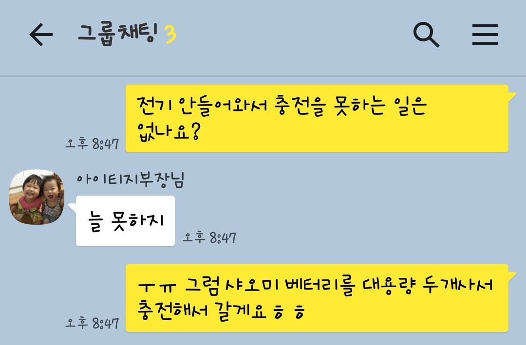 현재 아이티에 계신 지부장님의 메세지 였다. 언블리버블! 전기가 자주 나간다고? 한국에서는 이렇게 흔한 전기가 없어서 하루, 몇날 몇일을 손정등과 촛불을 이용해서 생활한적이 있다는 지부장님의 말씀은 내 귀를 의심하기에 충분했다.
