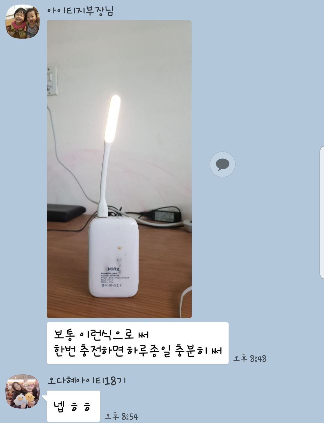 "전기가 자주 나가니 충전용 손전등을 꼭 사오세요"
