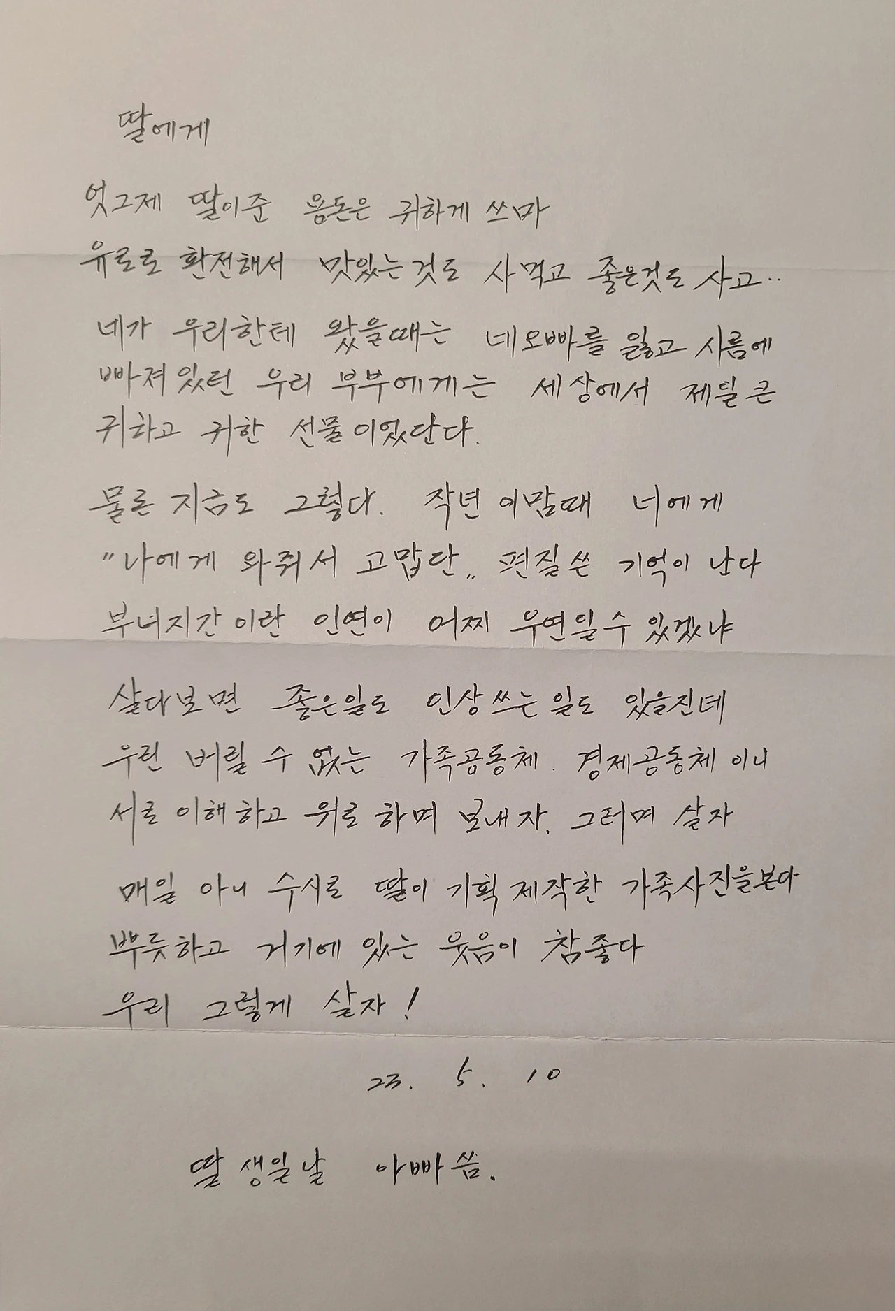 '딸에게'라고 시작된 편지의 내용은 이렇다.
