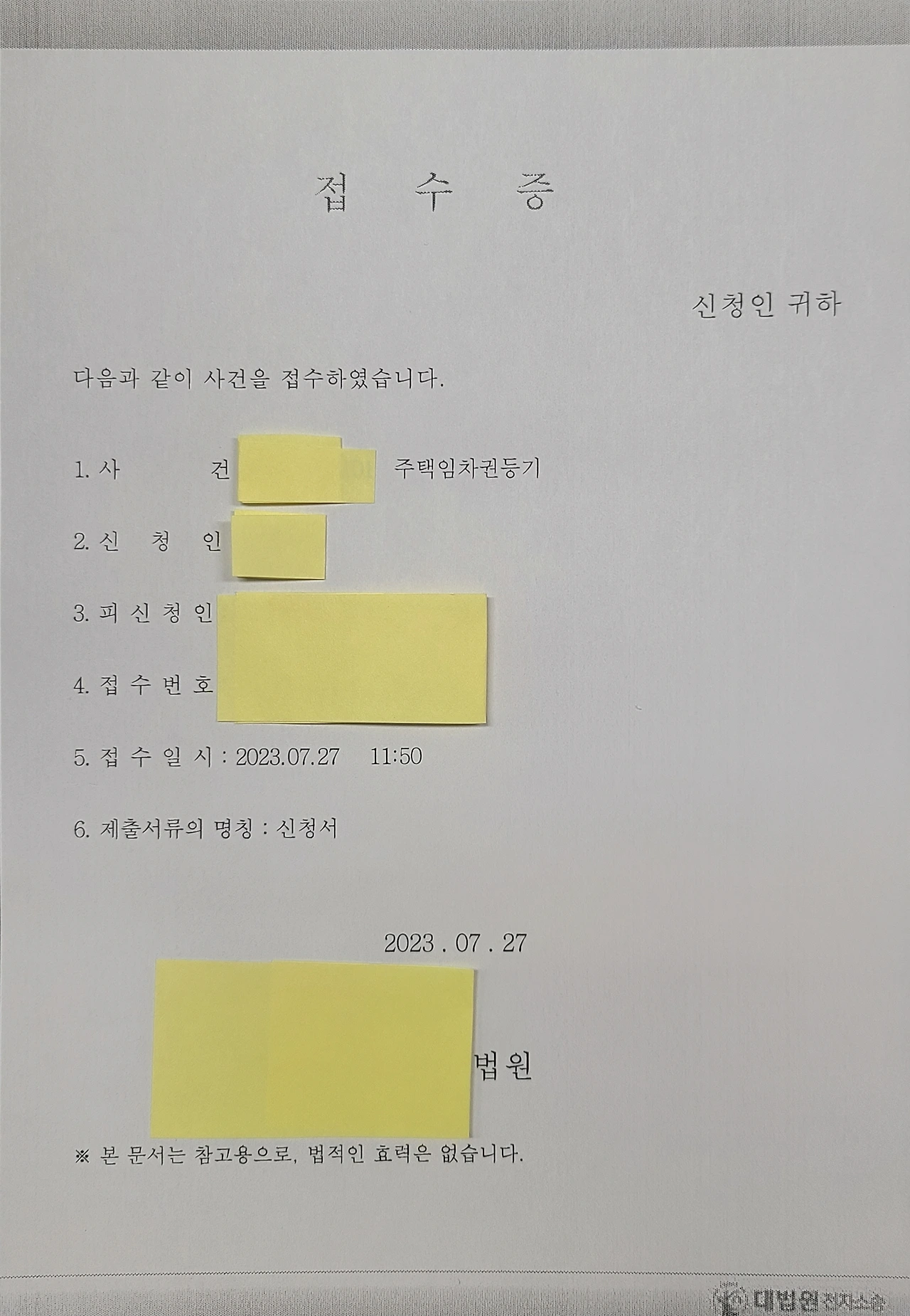 임차권등기명령, 저 혼자 직접 신청했습니다.