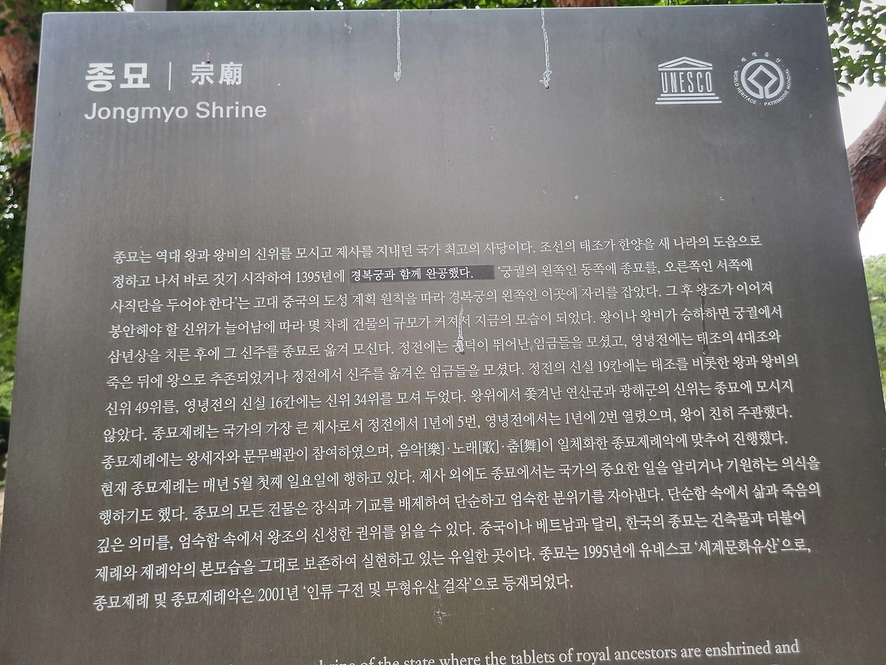 종묘에 들어가니 입구를 통제한다. 일반 고궁과 달리 조선시대 왕들의 제사를 모신 곳이라 그런 것 같다.