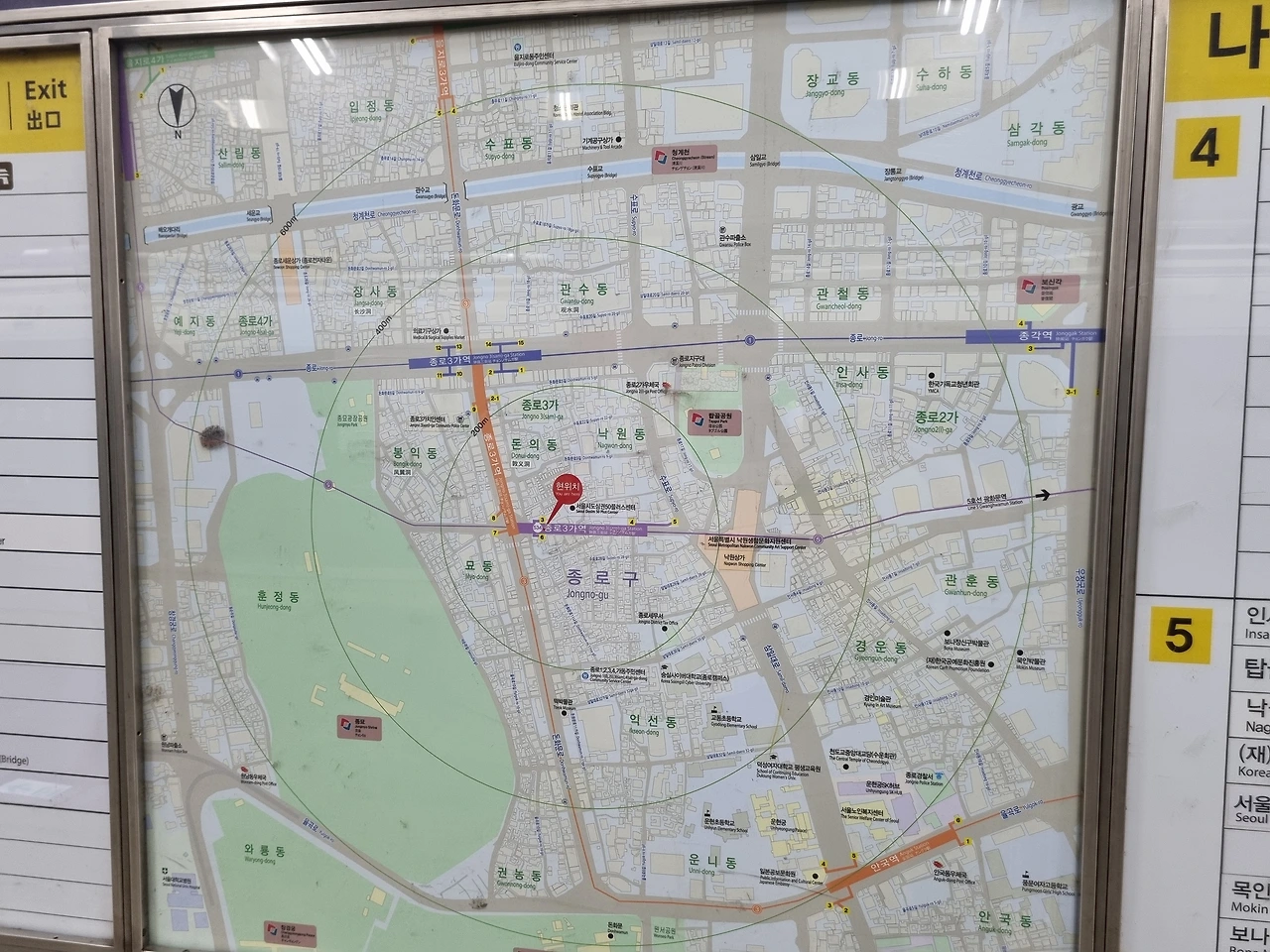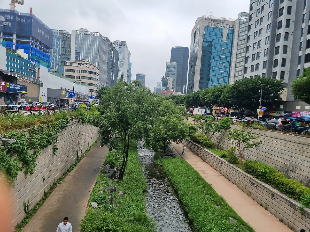 날씨가 몹시 흐리다. 을지로 3가 역에서 내려 잠시 시내중심부 상가, 청계천 구경하다. 사람들이