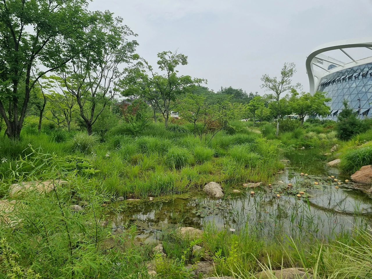 희귀종의 식물, 수련 꽃이 예쁘다. 한국의 정원은 보수공사 중이다.
