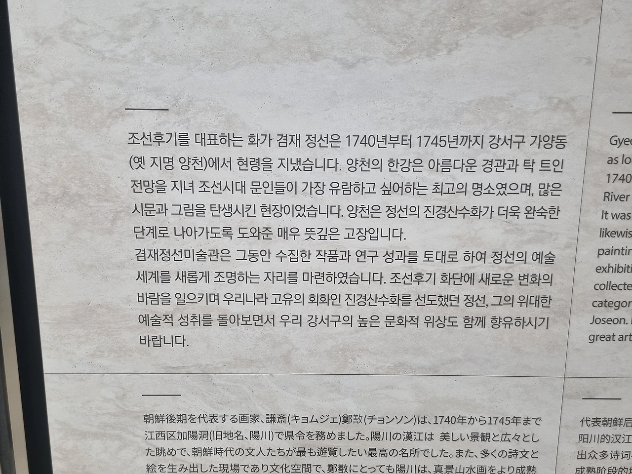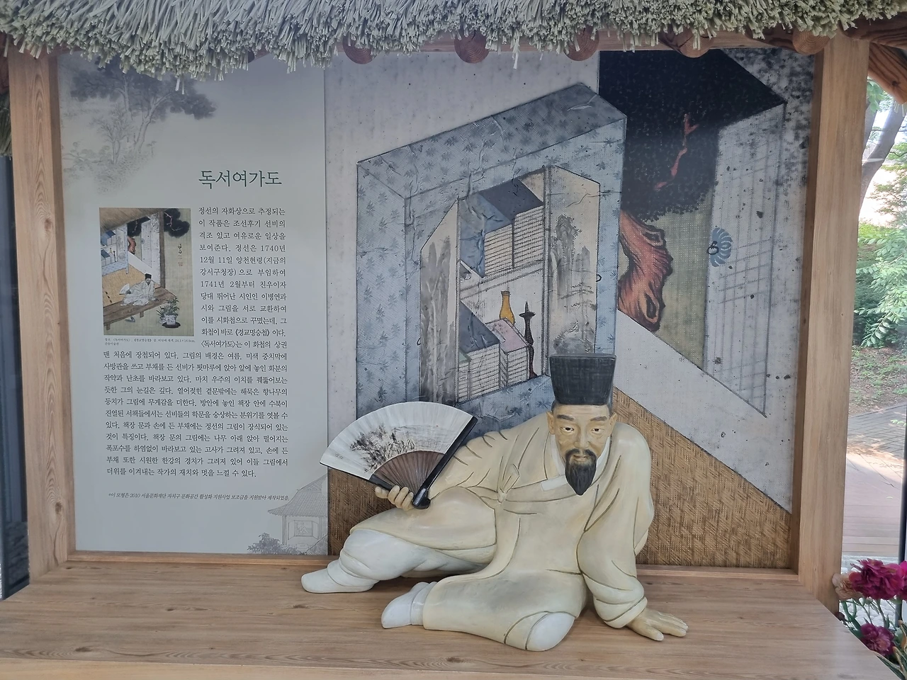 내려오는 길에 겸재정선미술관에 들려 그림을 관람하다. 풍경화가 많고 금강산 전도가 특이하다.