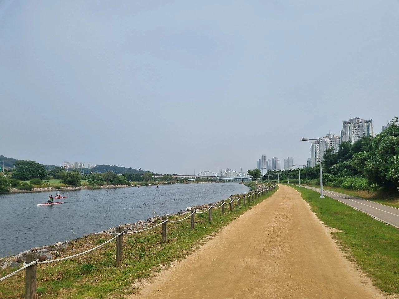 연세대가 있는 캠퍼스타운역까지 걸었다. 도중에 카누, 캬약을 훈련하는 선수들이 보인다.