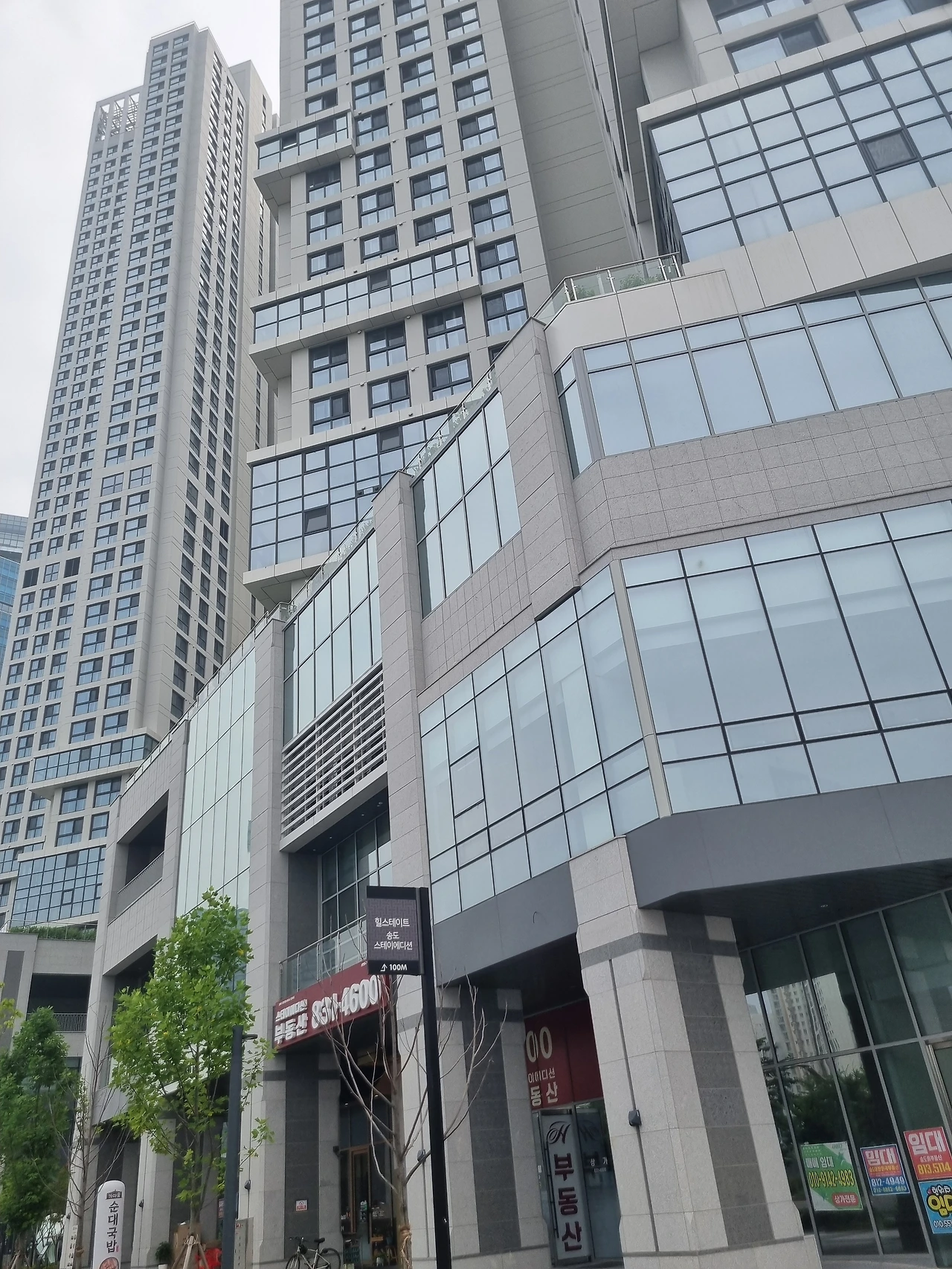 내려걷다 보니 그 말썽 많은 생활숙박시설인 <힐스테이트송도스테이에디션>을 거치다. 그곳은 상가들도 임대문의 깃발만 나부끼고 지금 분양자와 건설사가 소송 중이다.
