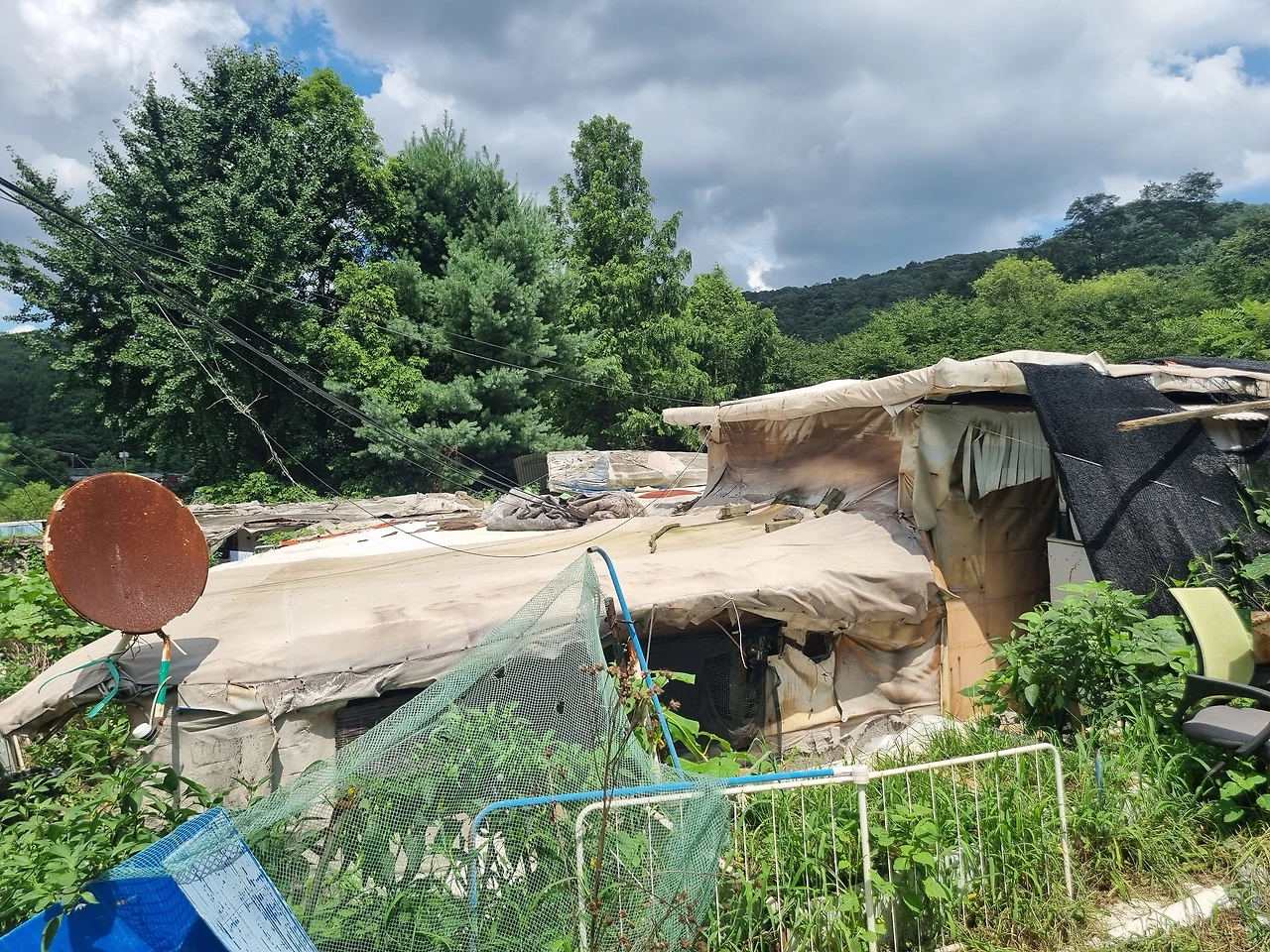 곧 무너져갈 것 같은 판잣집들, 곳곳의 쓰레기,