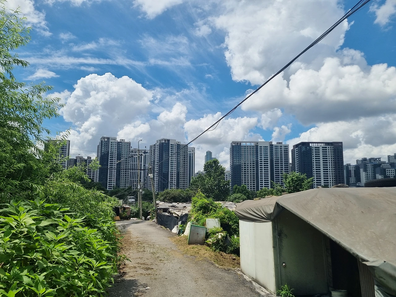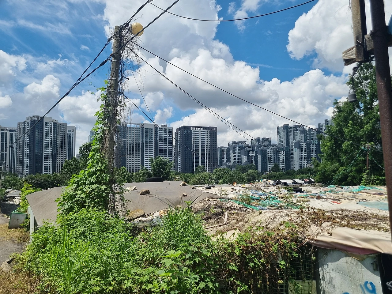 저 멀리 개포동 신축 아파트와 너무 비교된다.