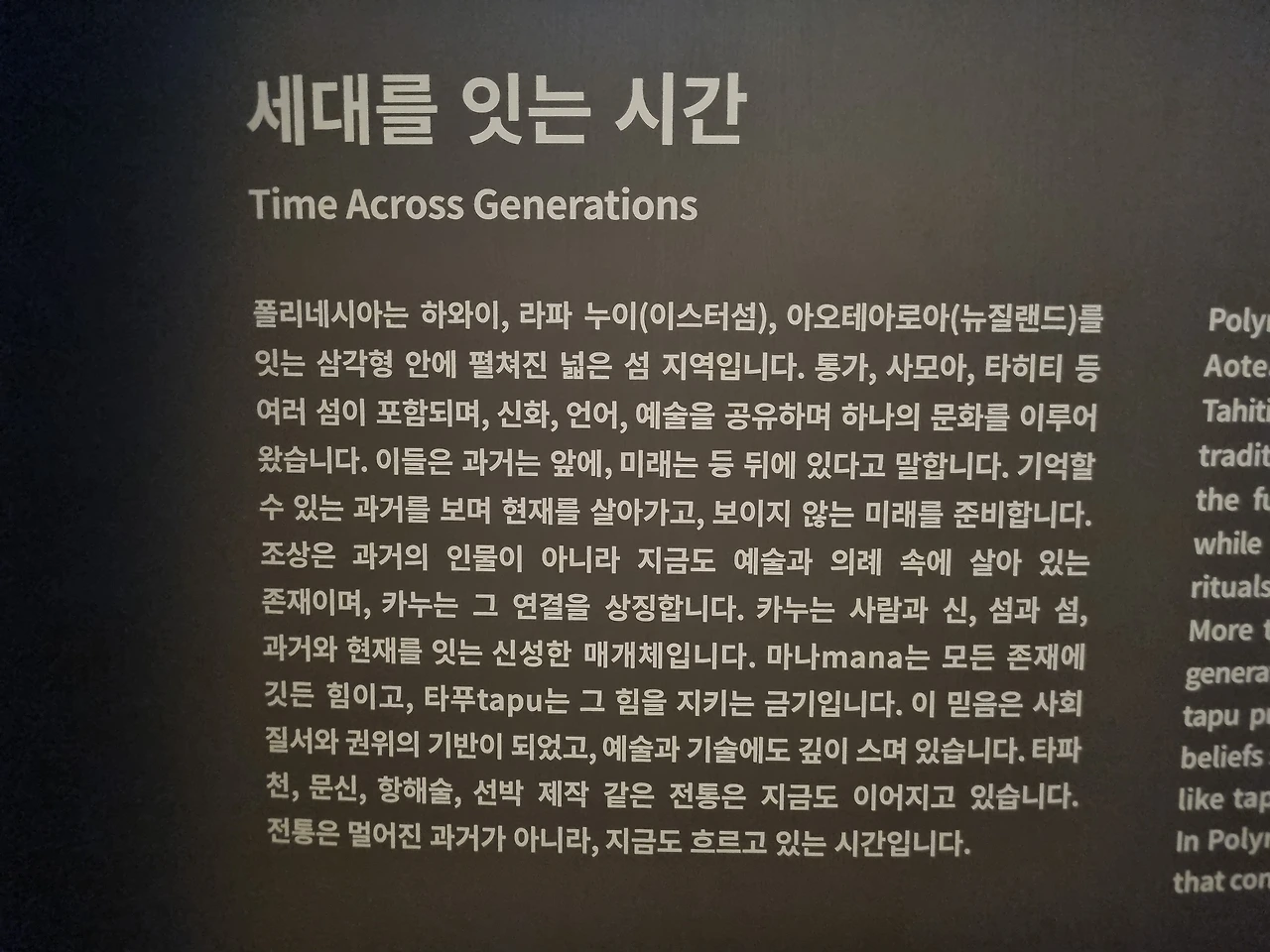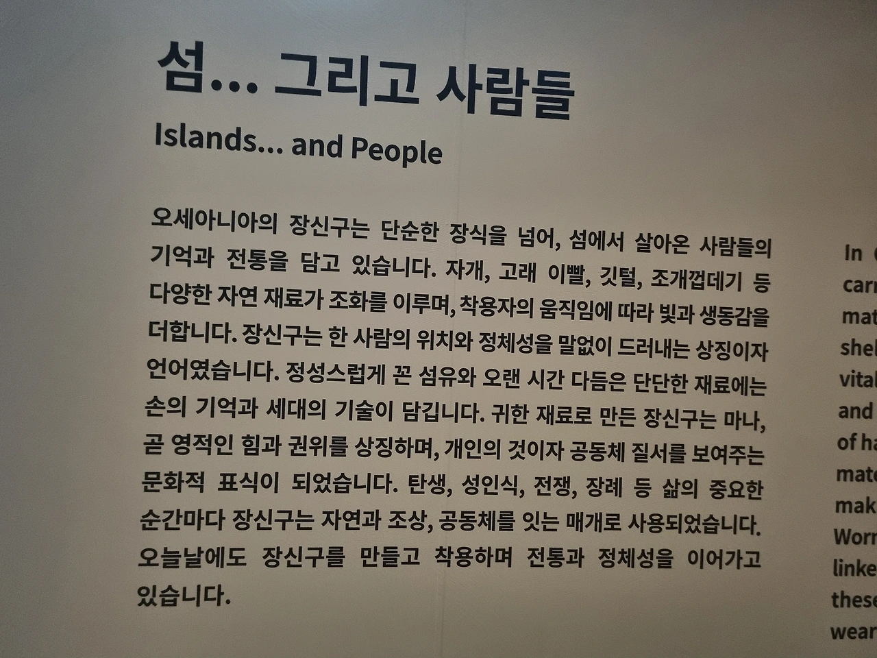 춤, 악기, 노래, 카누 등 그곳 문화가 전시되어 있다.