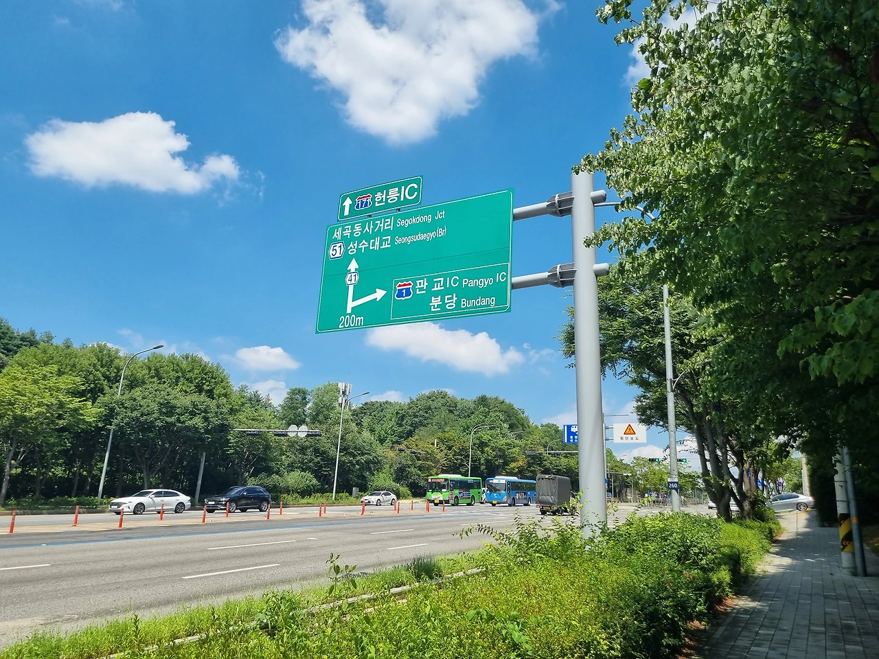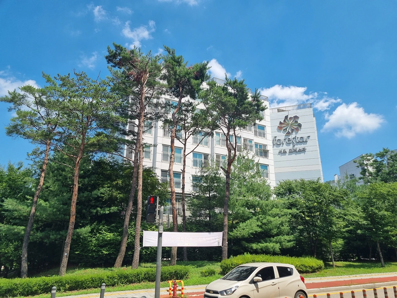 내리니 그린벨트지역이 많아 공기도 맑고 역 앞 아파트(서초포레스타)도 중층이라 시원하다.