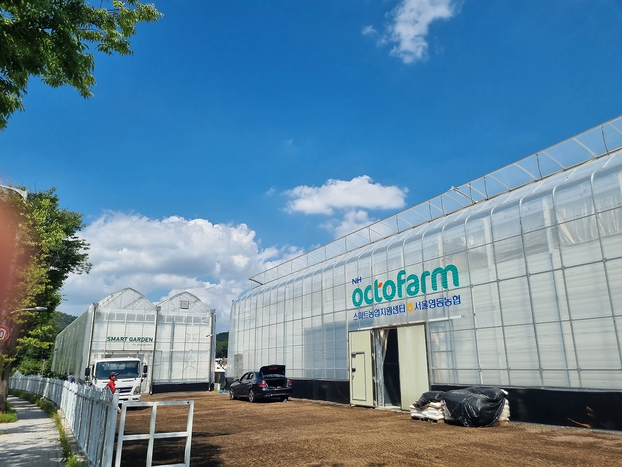 스마트팜 비닐하우스도 보인다.