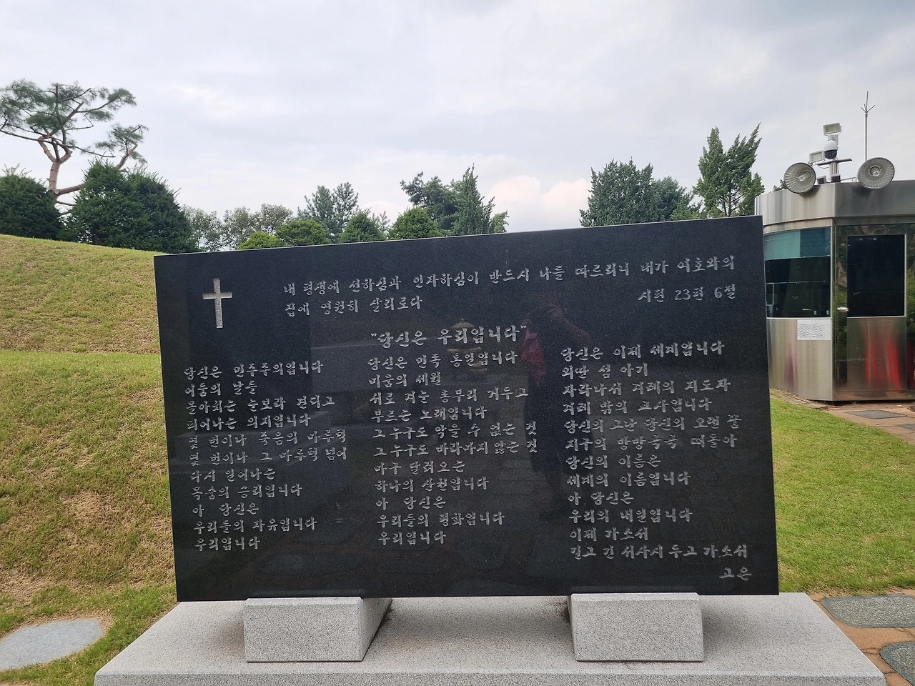 정문으로 와서 보니 충성분수대 조각상이 있다.