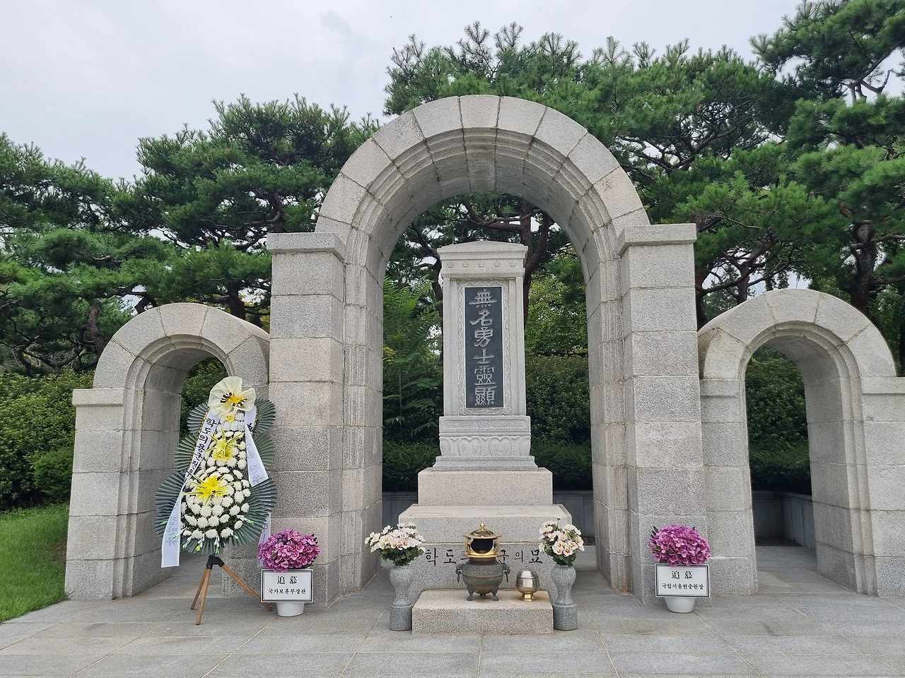 잡고 있다. 무명용사, 현충탑에서 묵념을 통해 가신