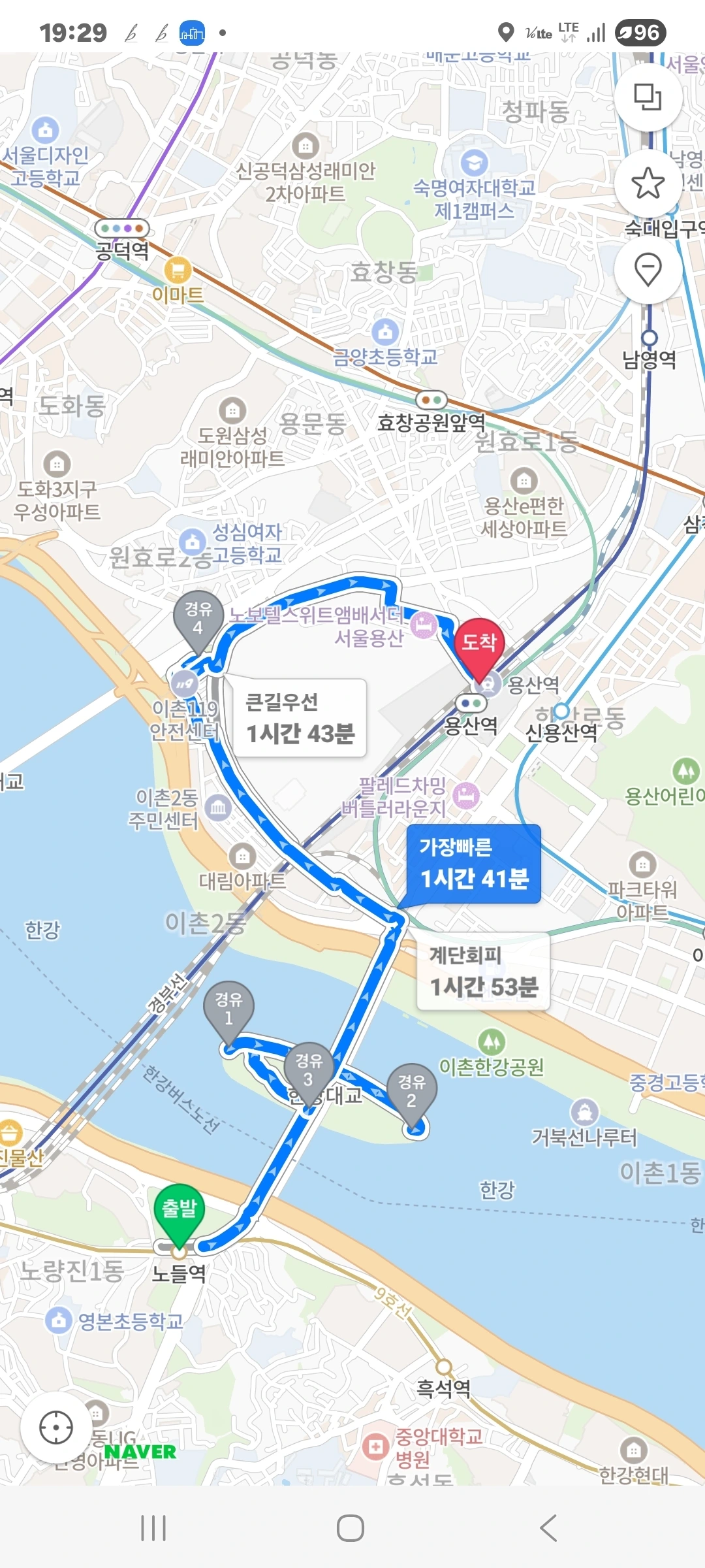 용산으로 방향을 틀어 직진한다.