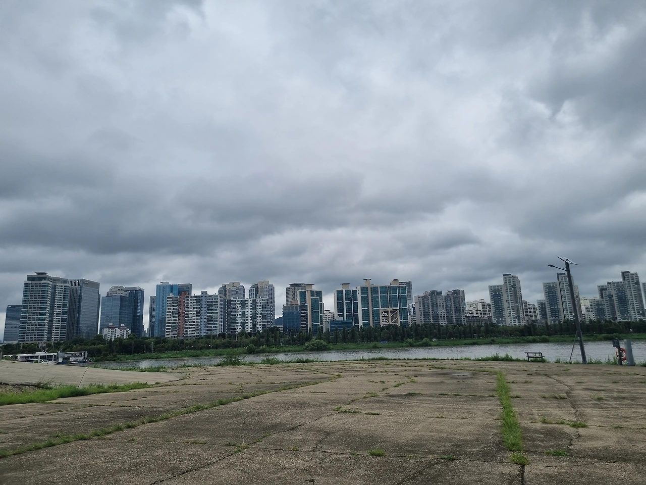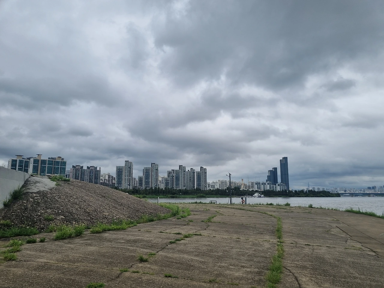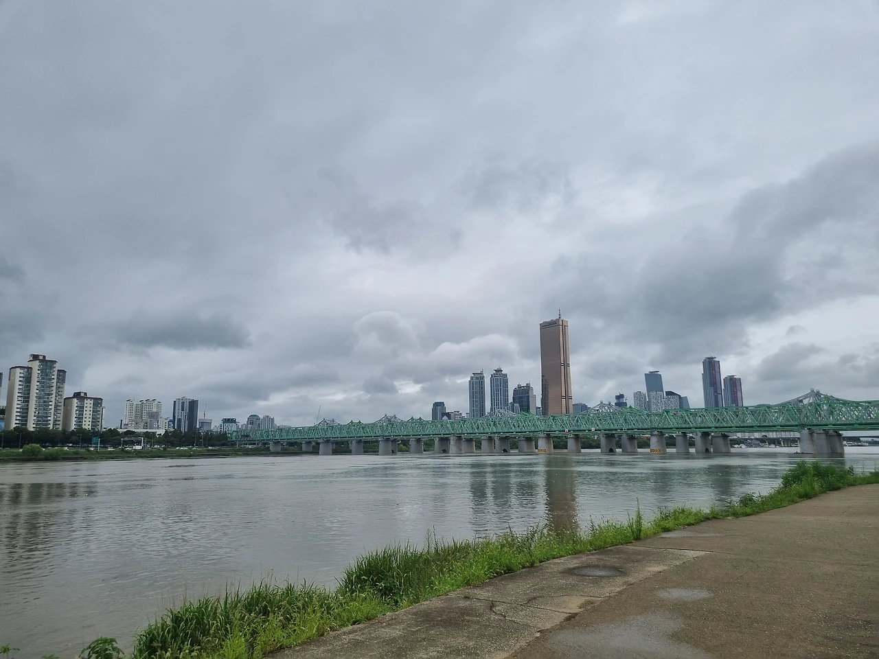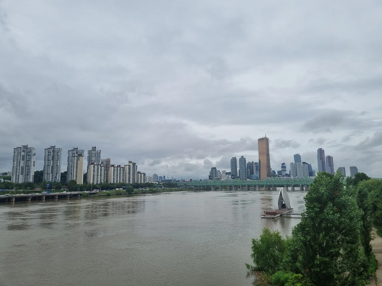 맞춤이다. 장마로 한강변 산책길이 물에 잠겼다.