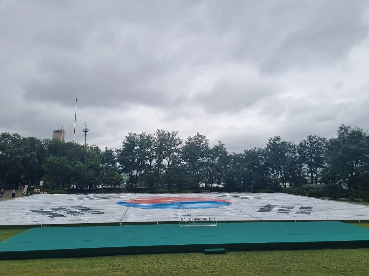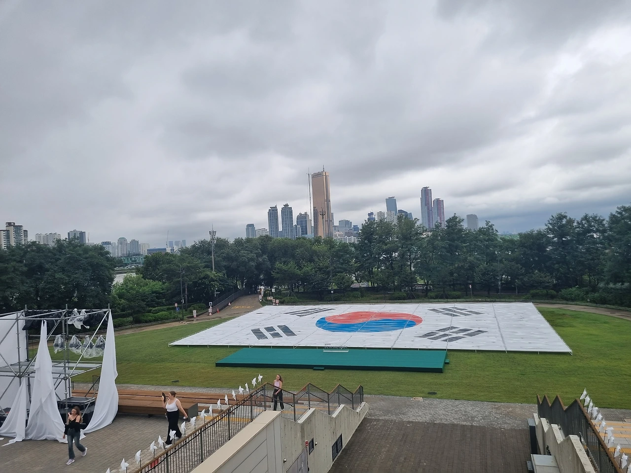 중이다. 큰고 작은 태극기가 곳곳에 휘날리고 있다.