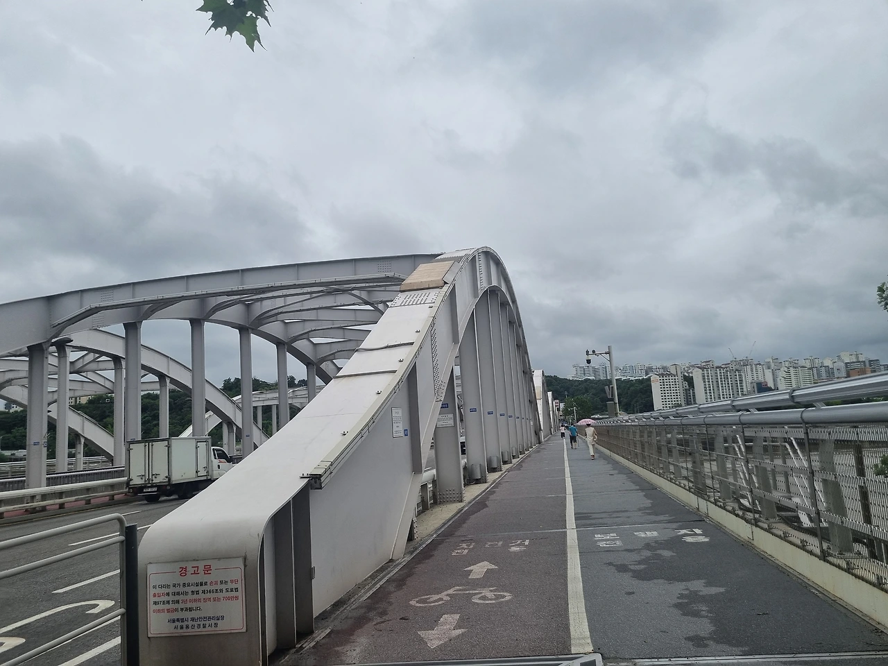 한강대교를 건너다. 사람과 자전거가 건너기에