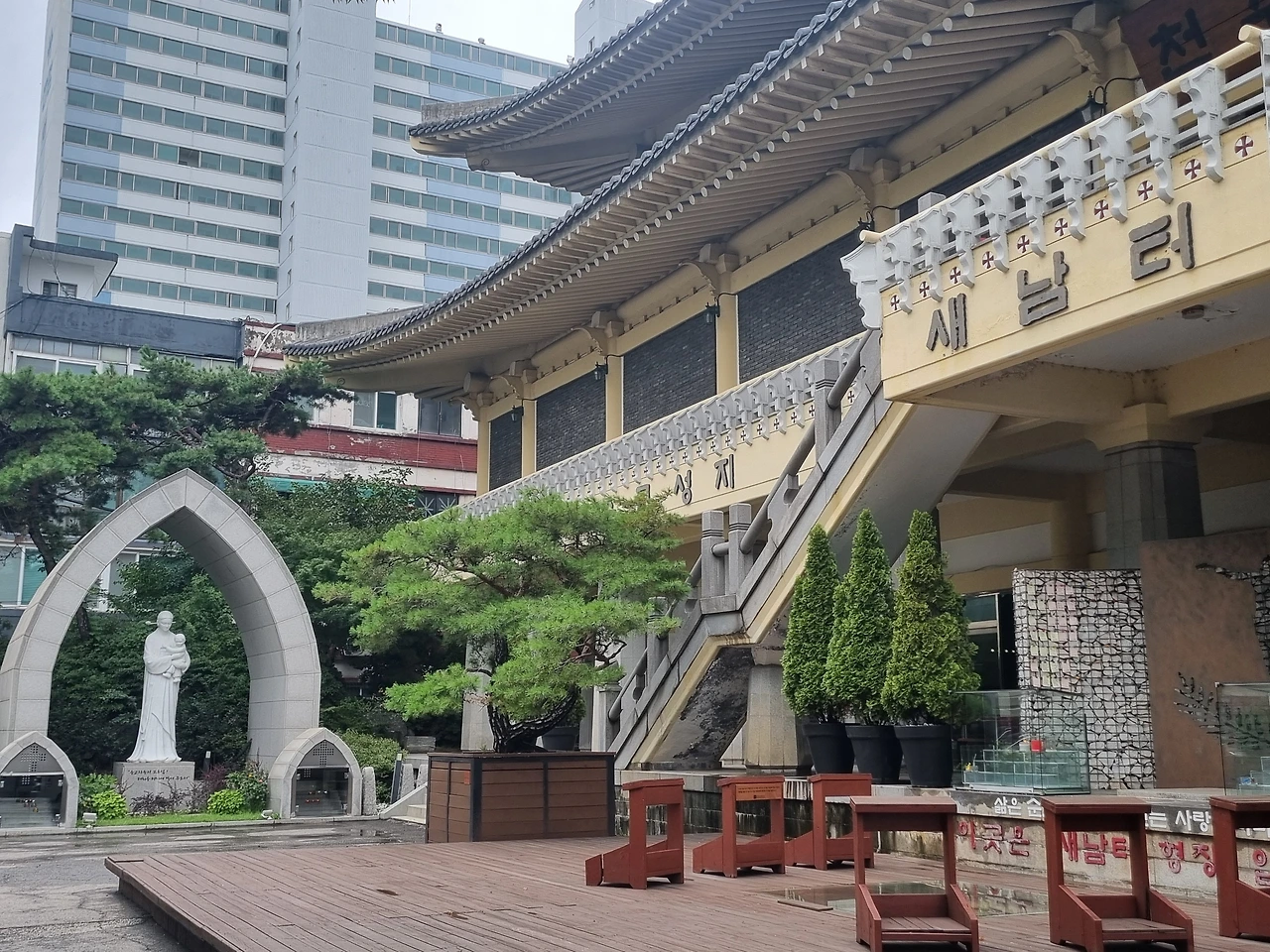 철로 고가를 지나니 바로 순교성지 새남터성당이다.