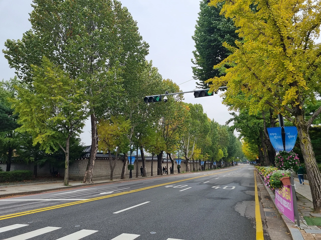 광화문 앞을 지나 경복궁역을 지나 북으로 향하는 길,