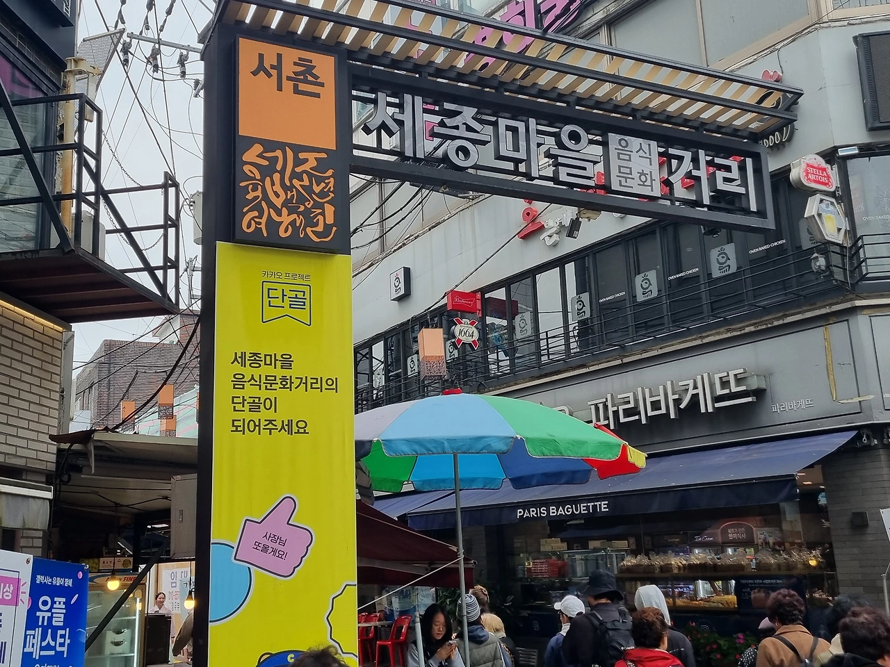 세종마을 음식거리가 즐비하다