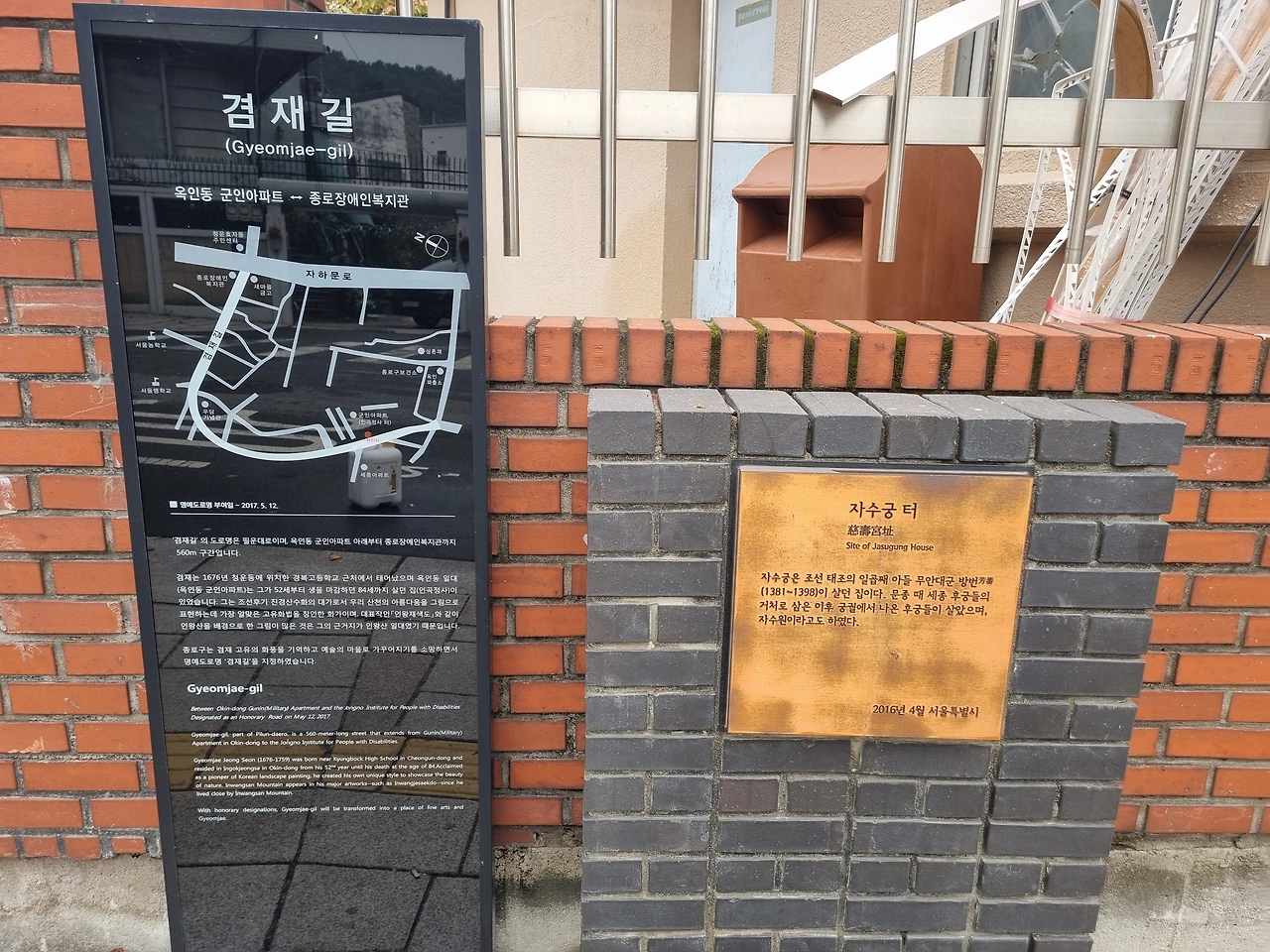 오른쪽으로 통인시장, 왼쪽으로 박노수미술관, 윤동주하숙집이 있다