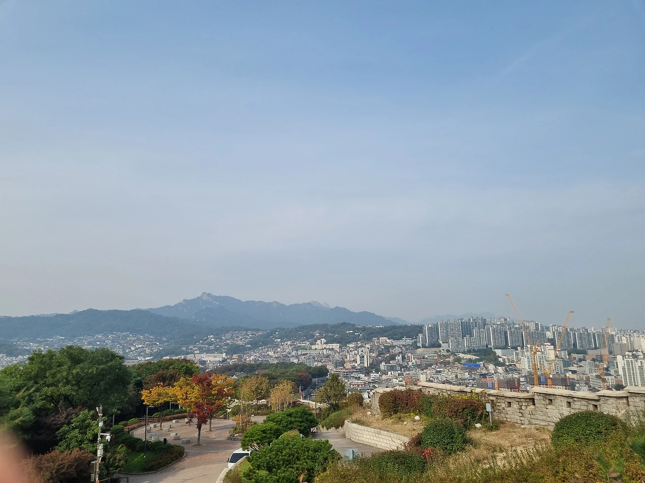 북으로 보니 북한산, 도봉산, 북악산, 인왕산이 보이고
