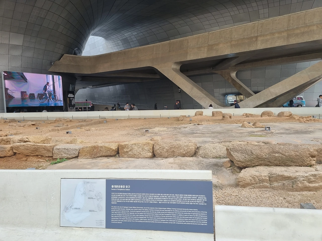 DDP(동대문 플라자) 내에 동대문운동장 유구(遺構)가 있다. 조선시대 훈련도감의 분영 중 하나인 하도감이 있었던 곳이다.