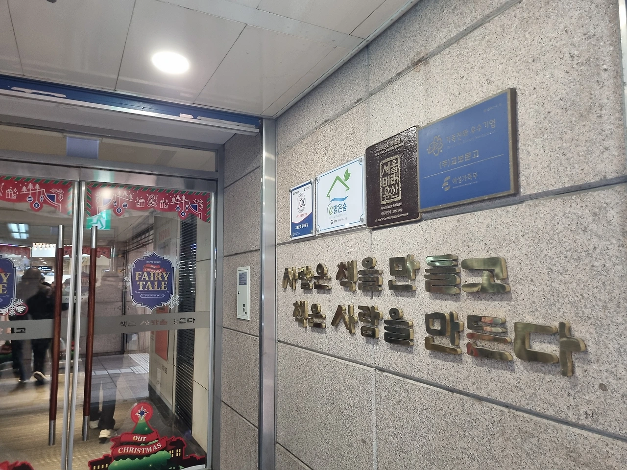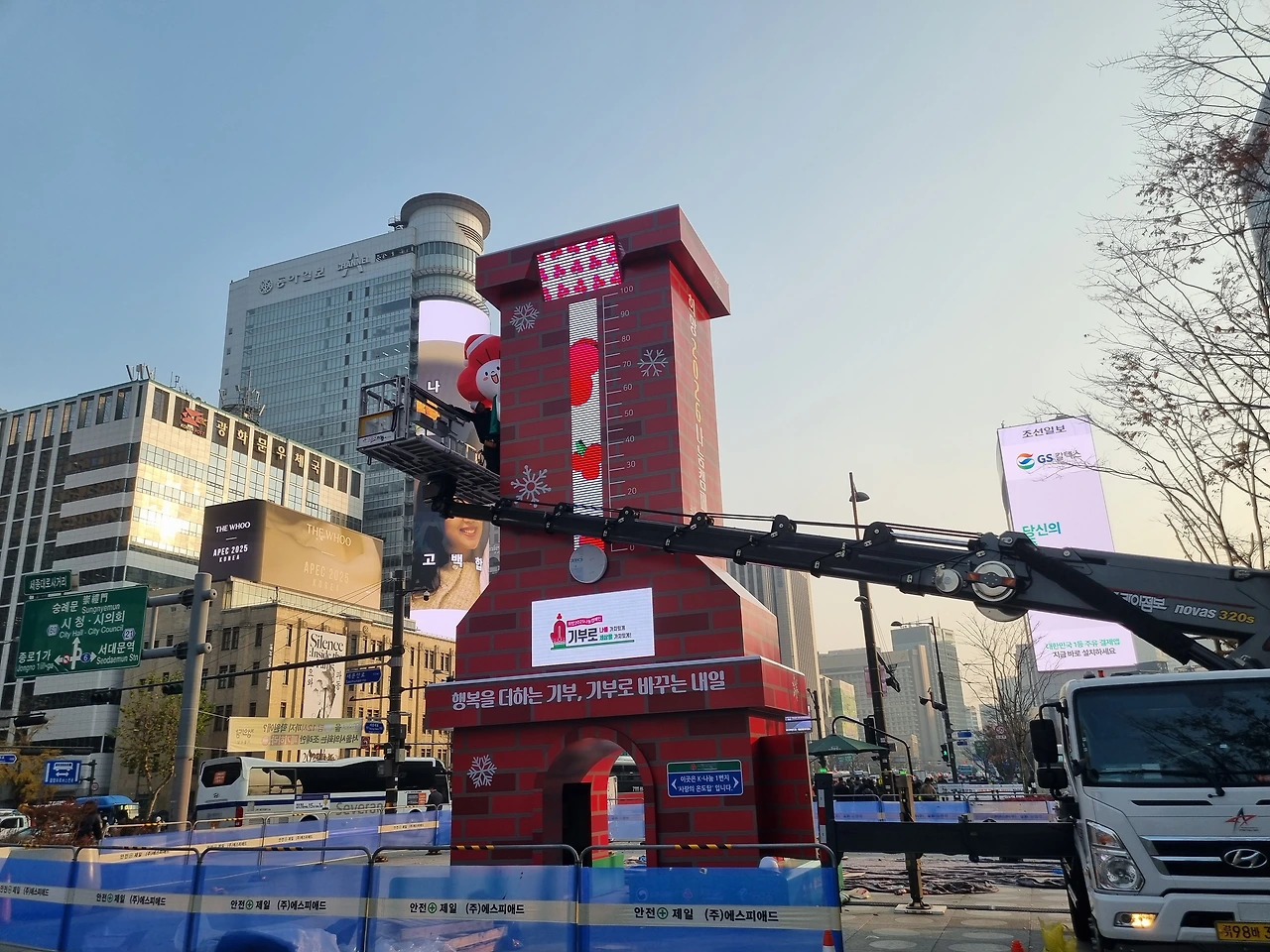 밖으로 나오니 연말이라 기부캠페인 탑도