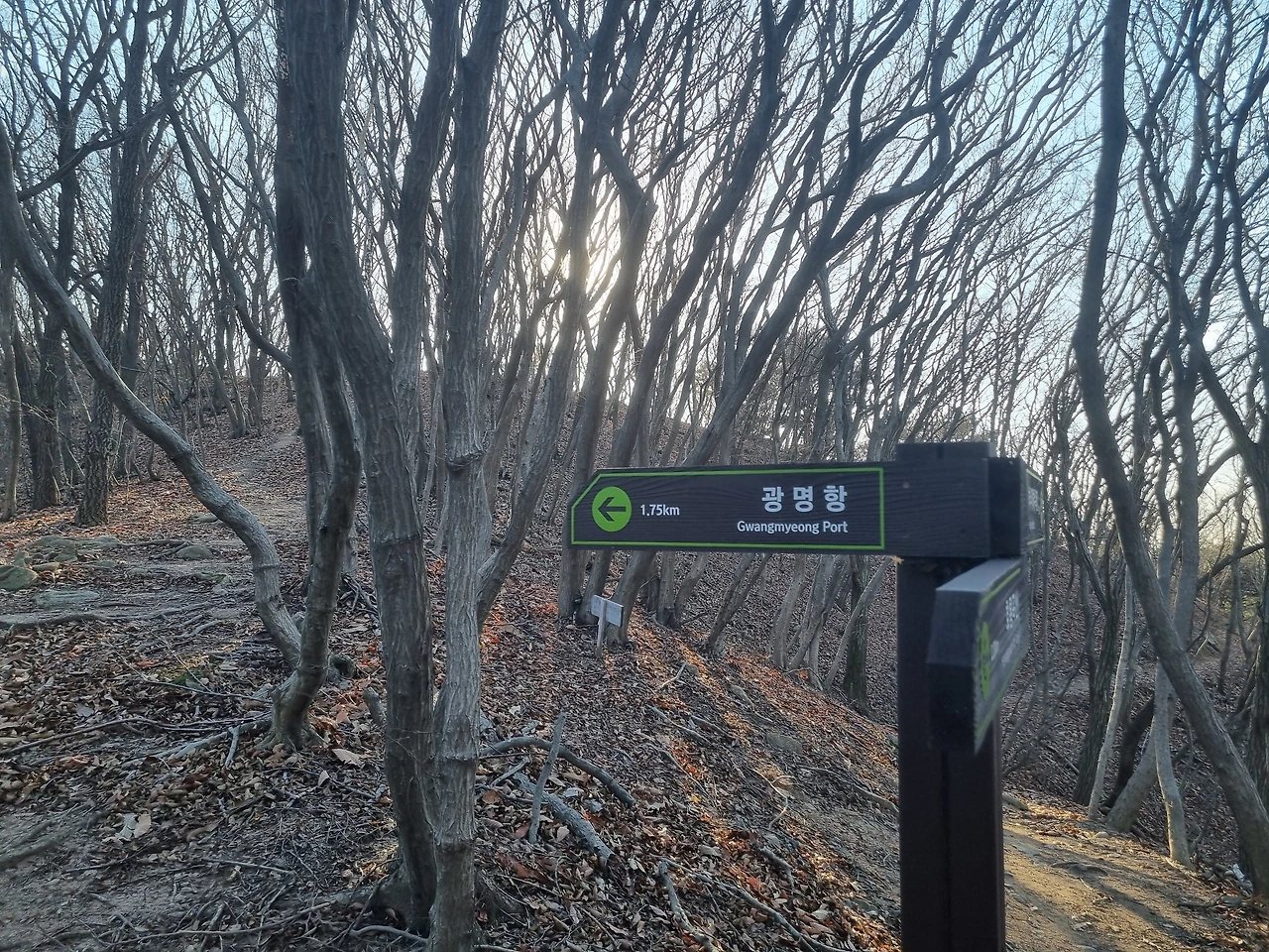 산 정상에서 광명항으로 한참 내려오는 길,