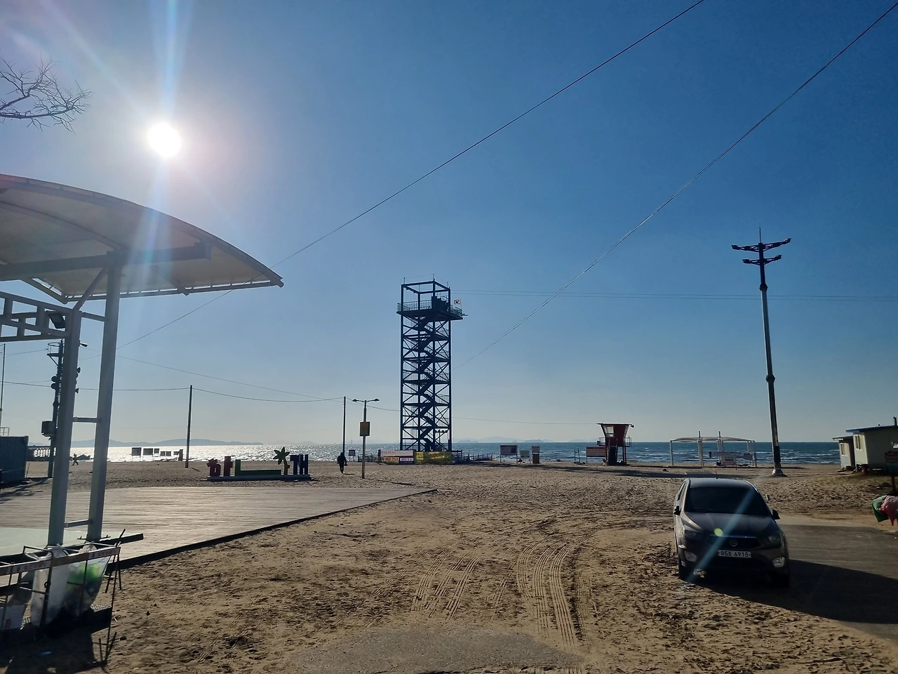 버스를 타고 하나개해수욕장에 하차하여