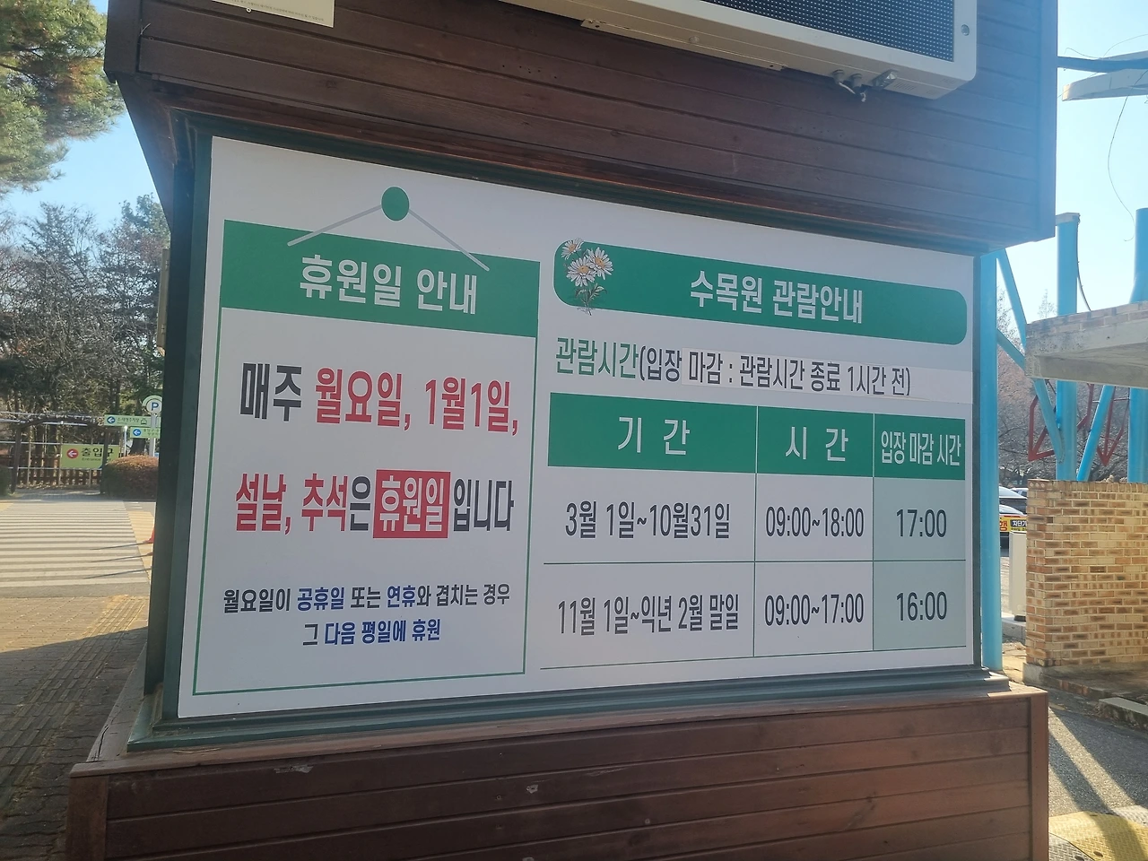 이 수목원은 월요일 휴무이다