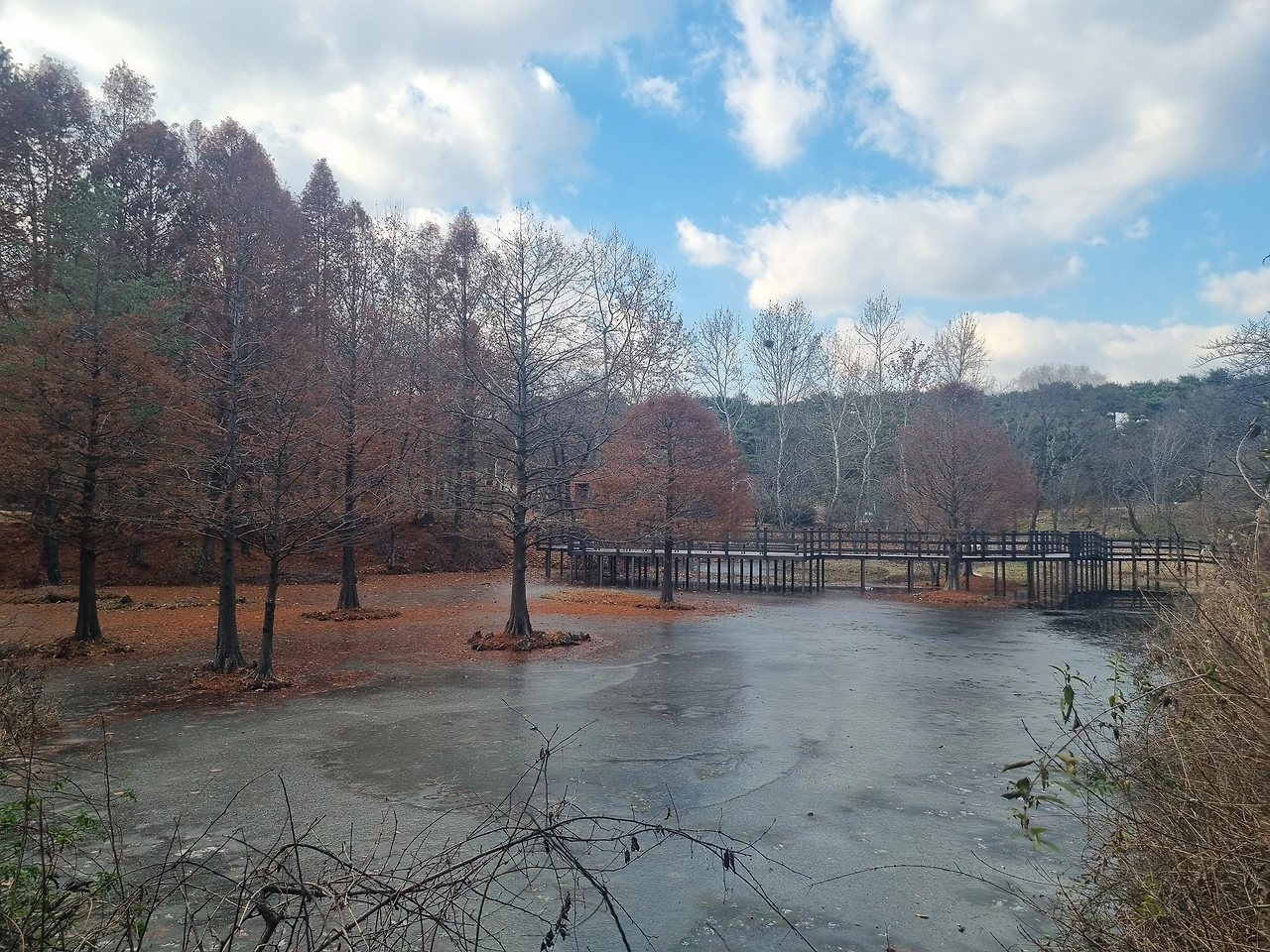 잎이 진 산과 수목원은 나목(裸木)으로