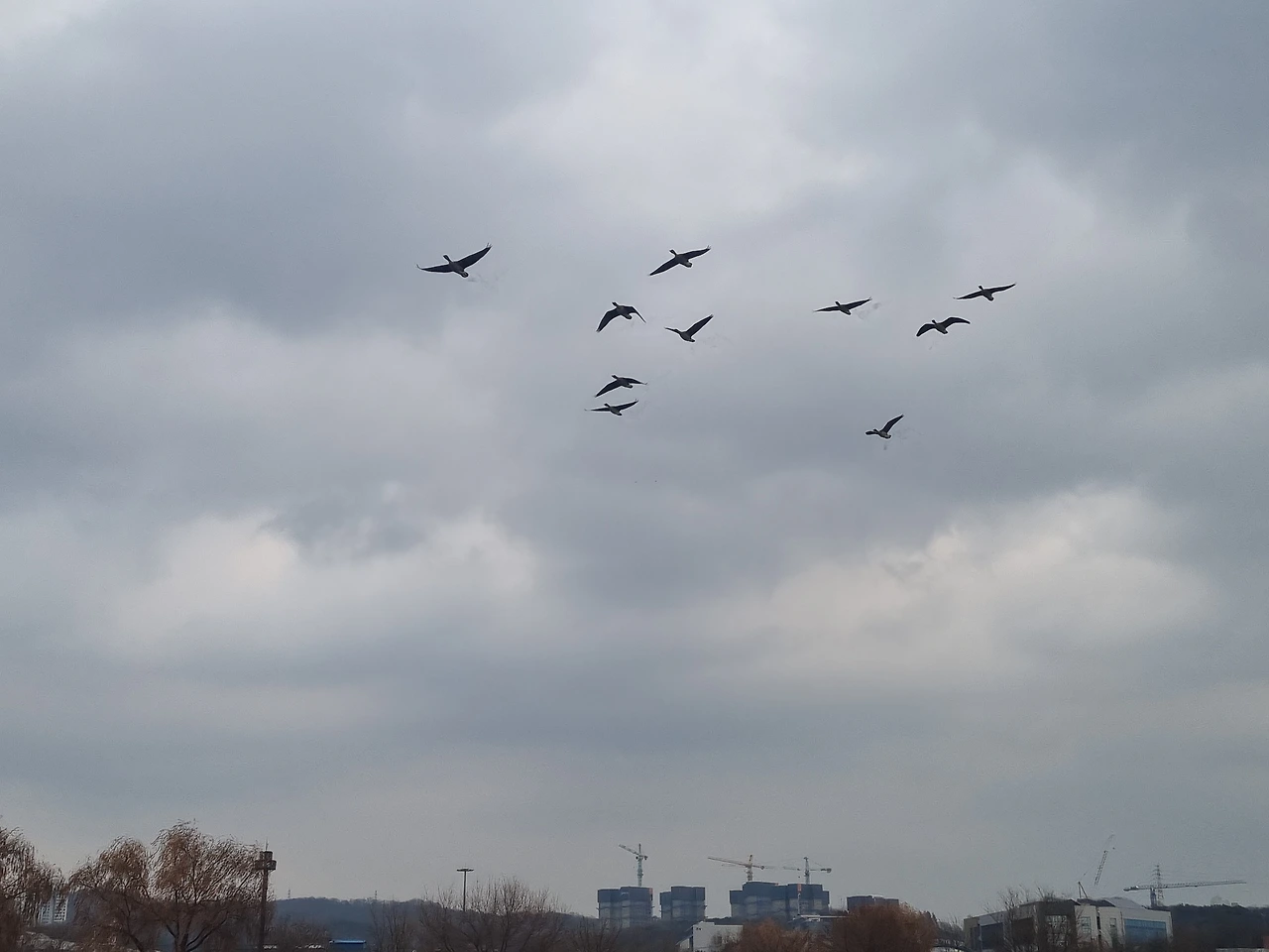 가끔 군무를 이루며 호수주위를 날아다닌다