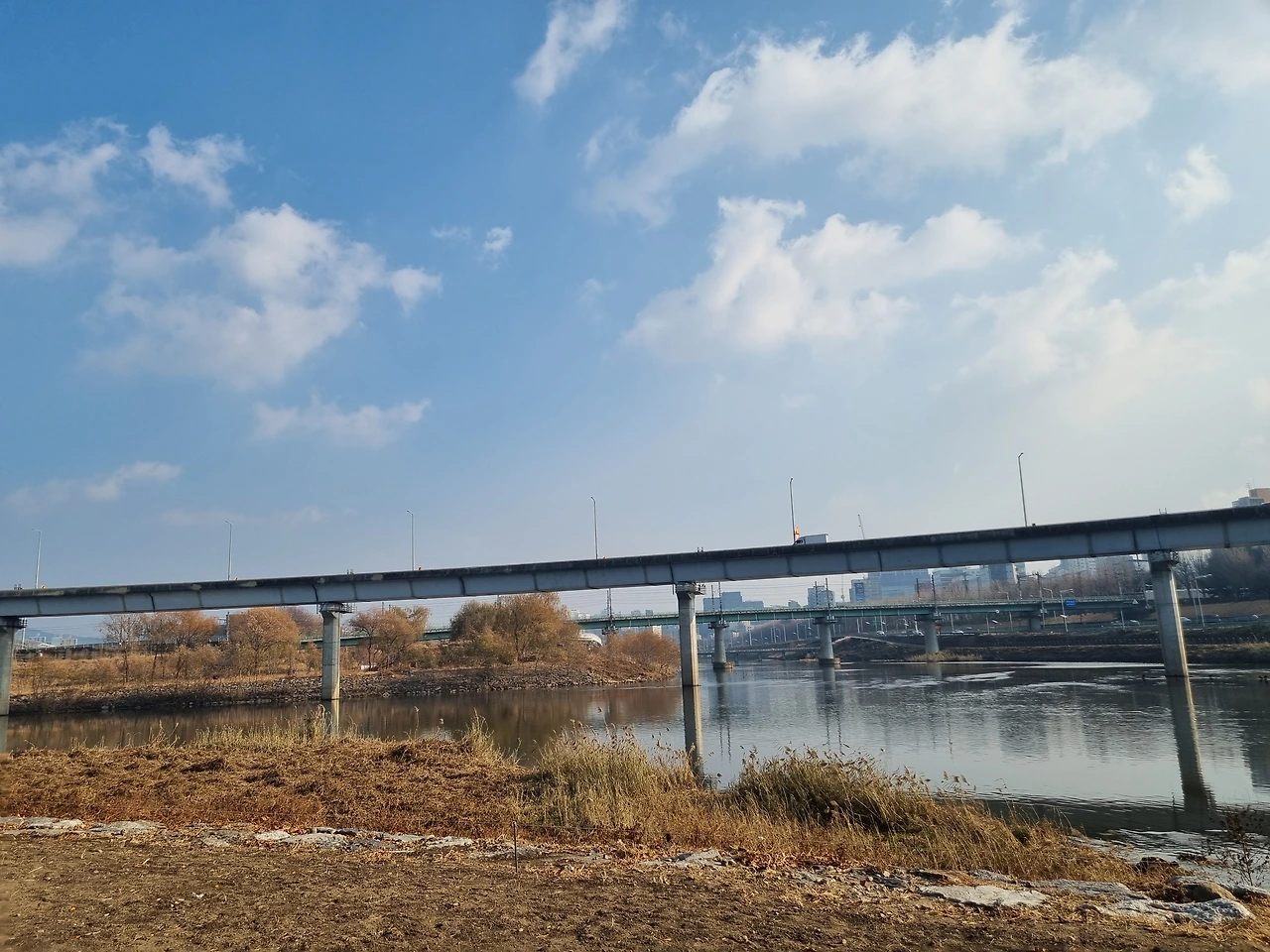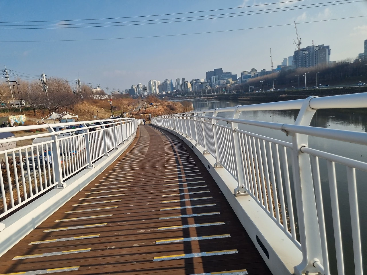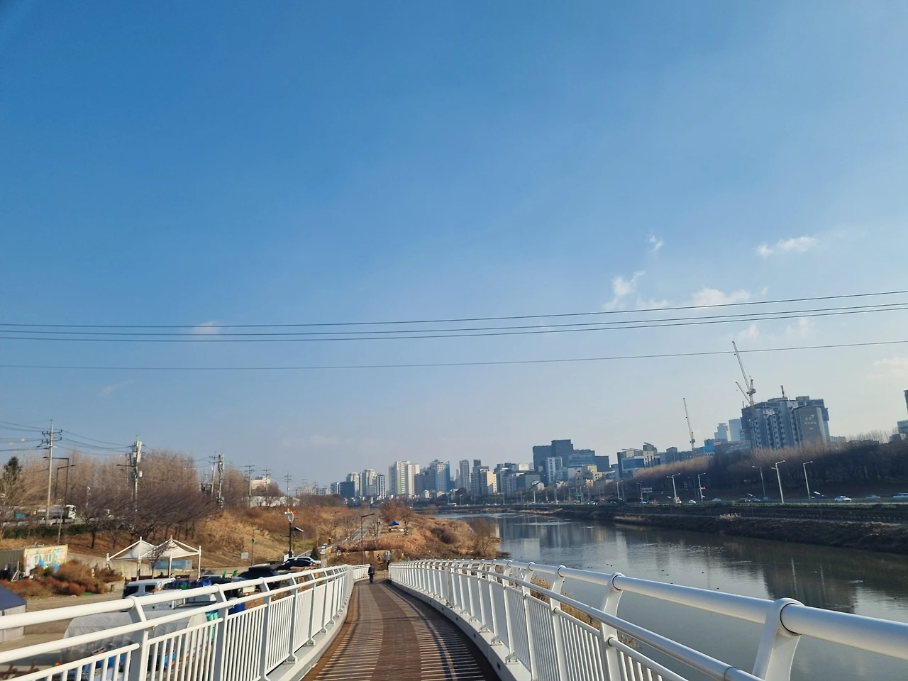 청계천으로 거슬러서 다리를 건너 중랑천으로