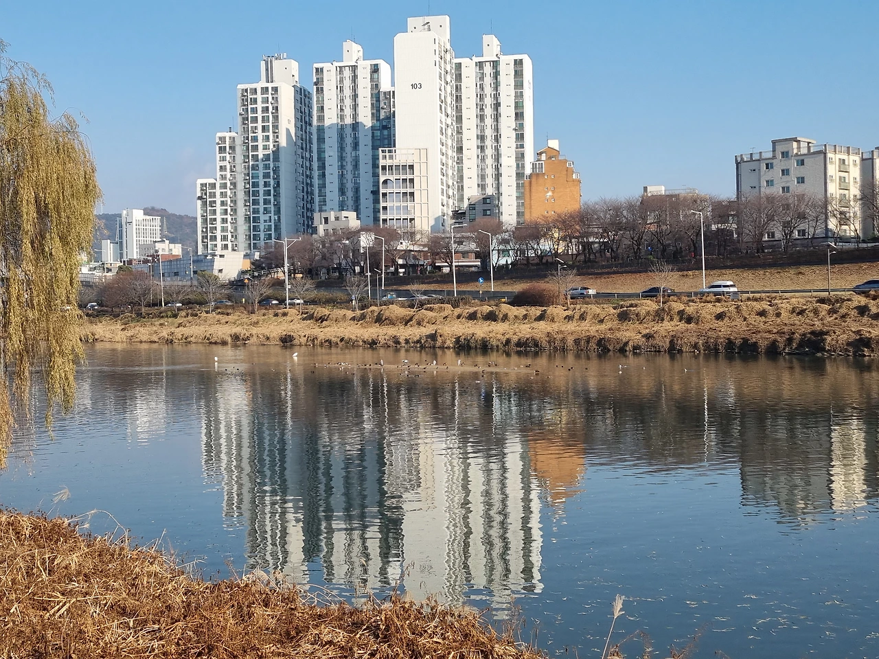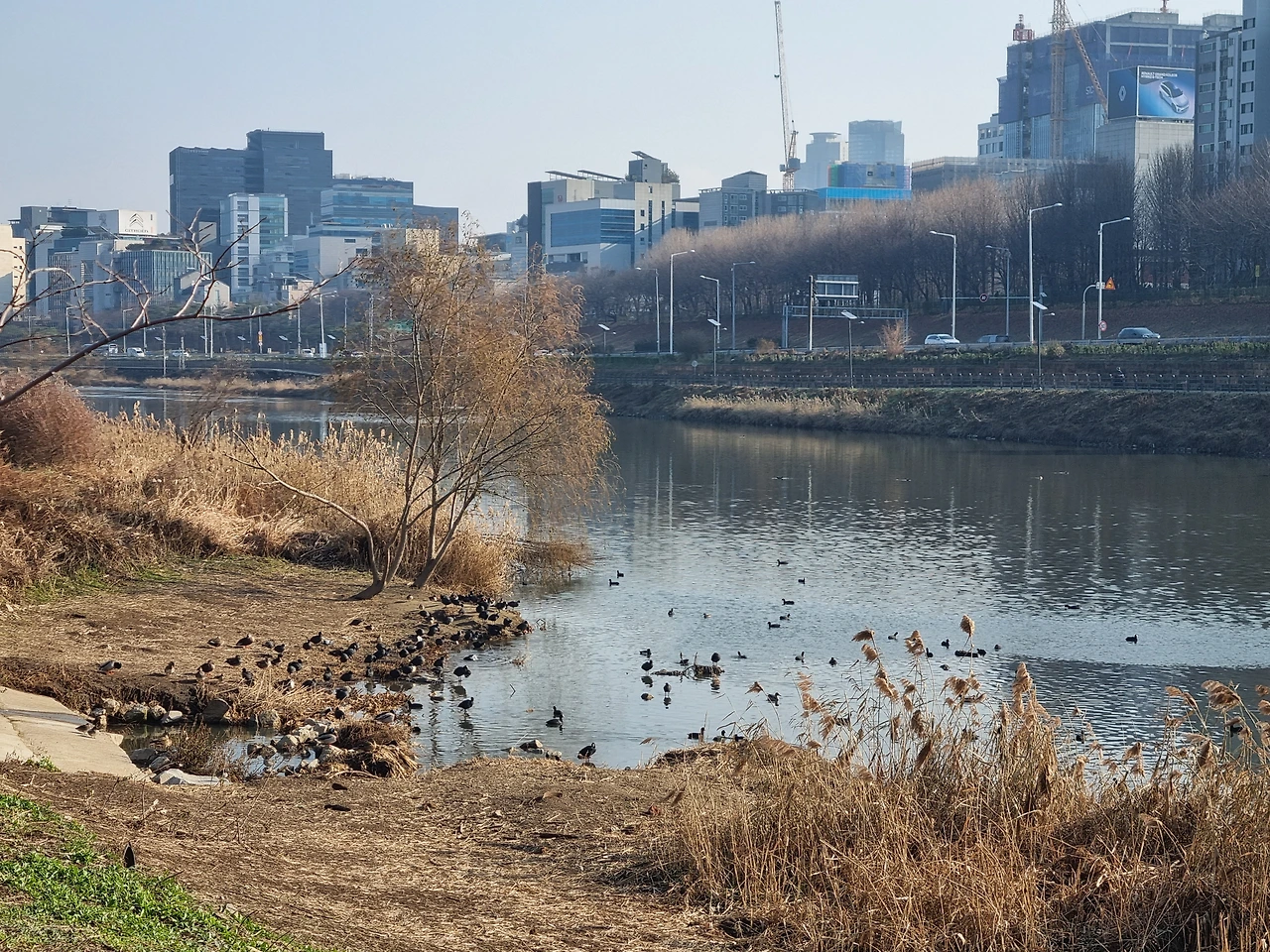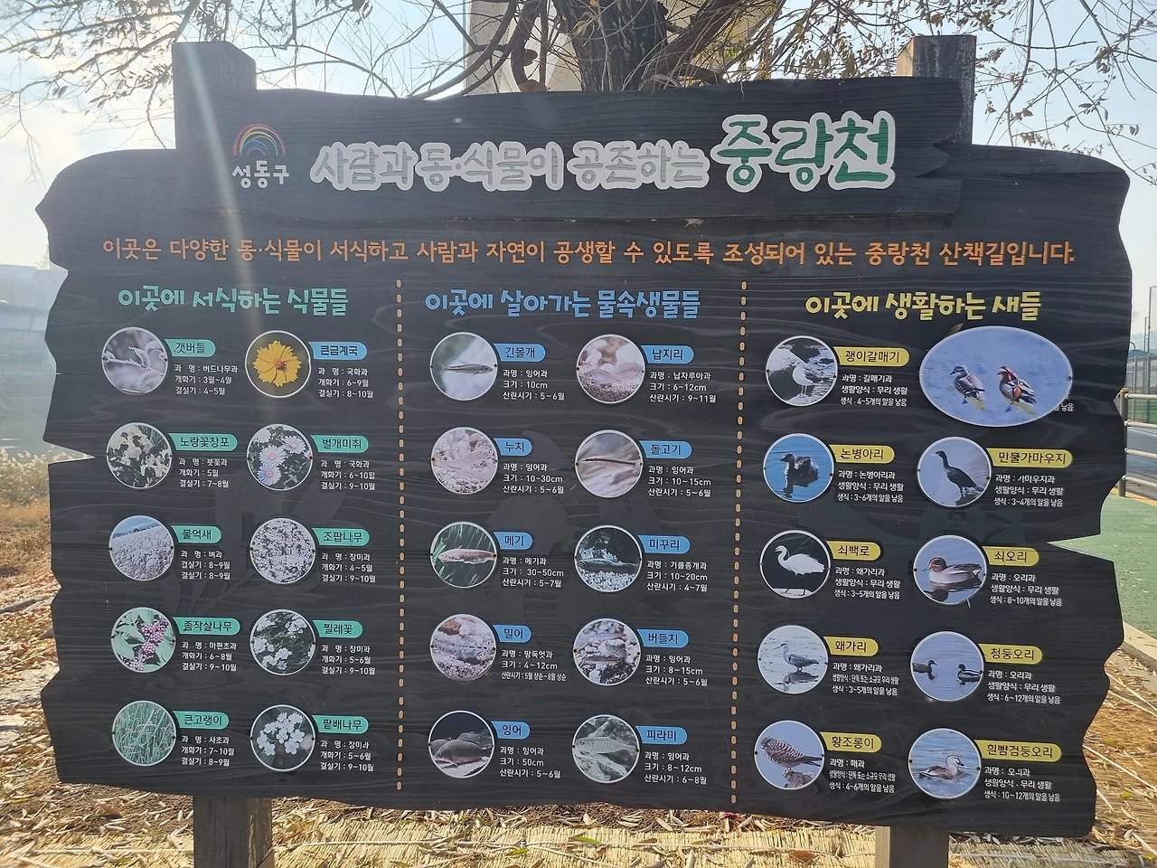 청계천으로 거슬러서 다리를 건너 중랑천으로