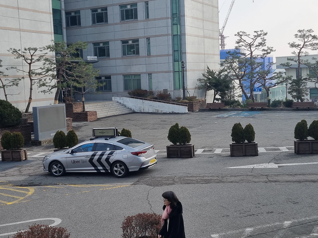 운동장을 거쳐 내려오니 우버택시가 보인다