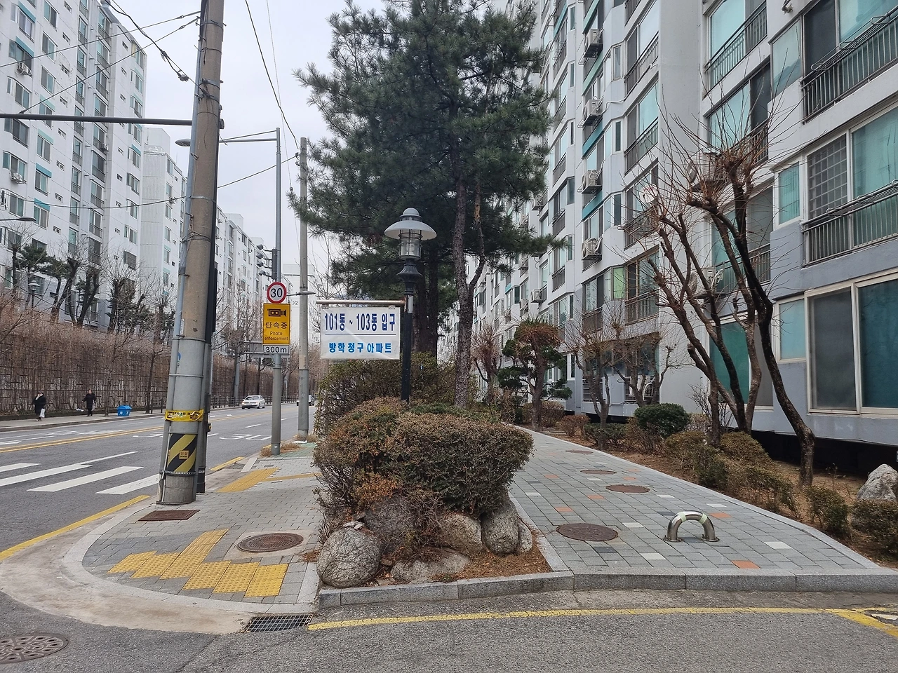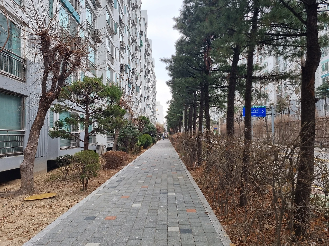 돌아 나오는 길, 방학청구아파트는 울타리인 담이 없고 나무심어 경계표시, 산책로를 조성하였다