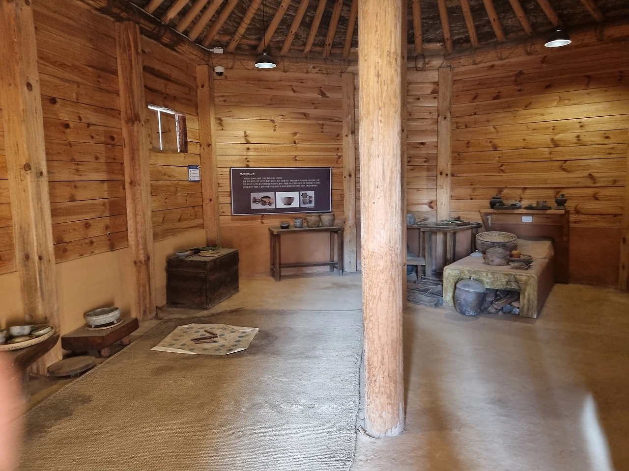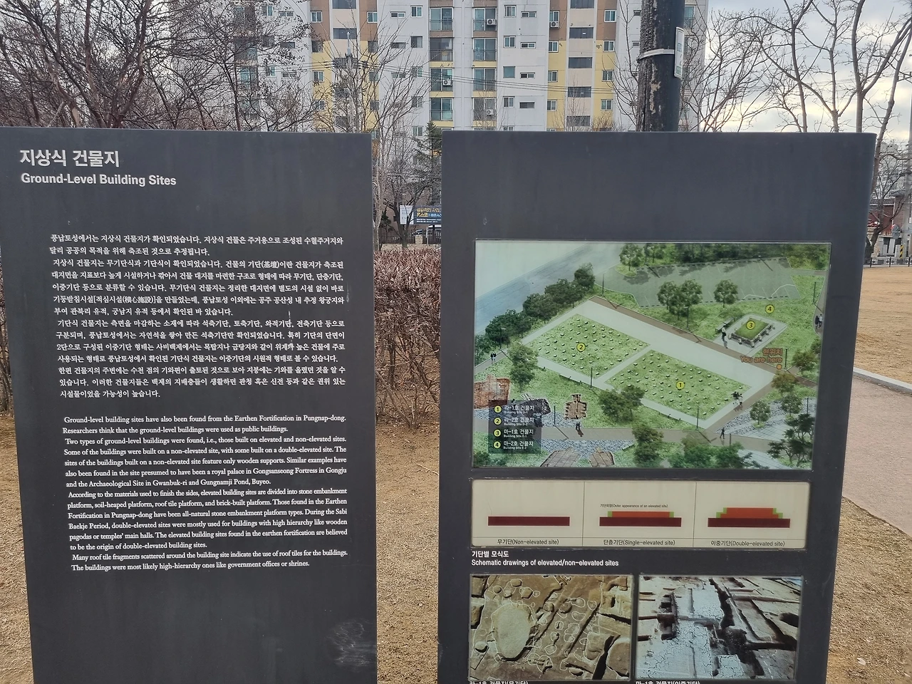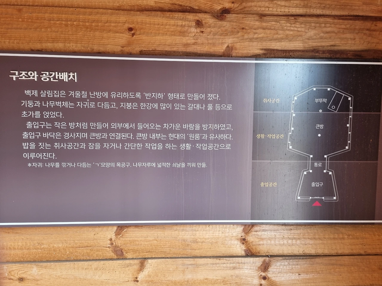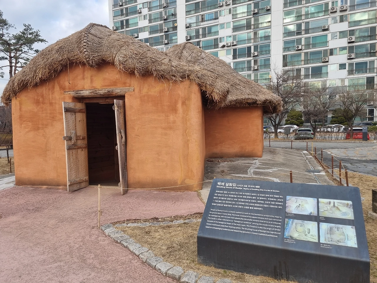백제살림집이 보이는 데, 땅을 1m 깊이 파고 살았다