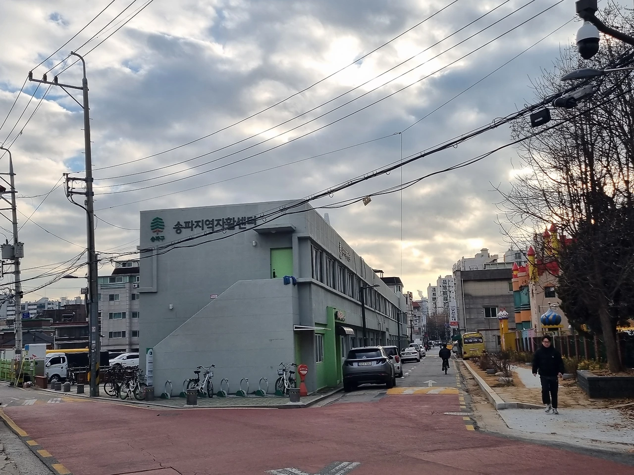 구청이 운영하는 솔바람복지센터로 긴 직사각형 건물이다