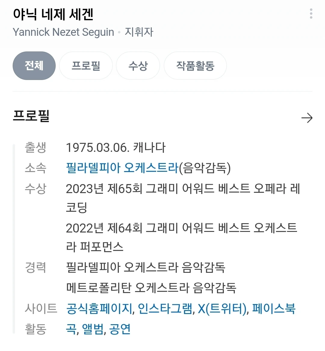 캐나다 출신의 필라델피아 오케스트라 음악 감독이자