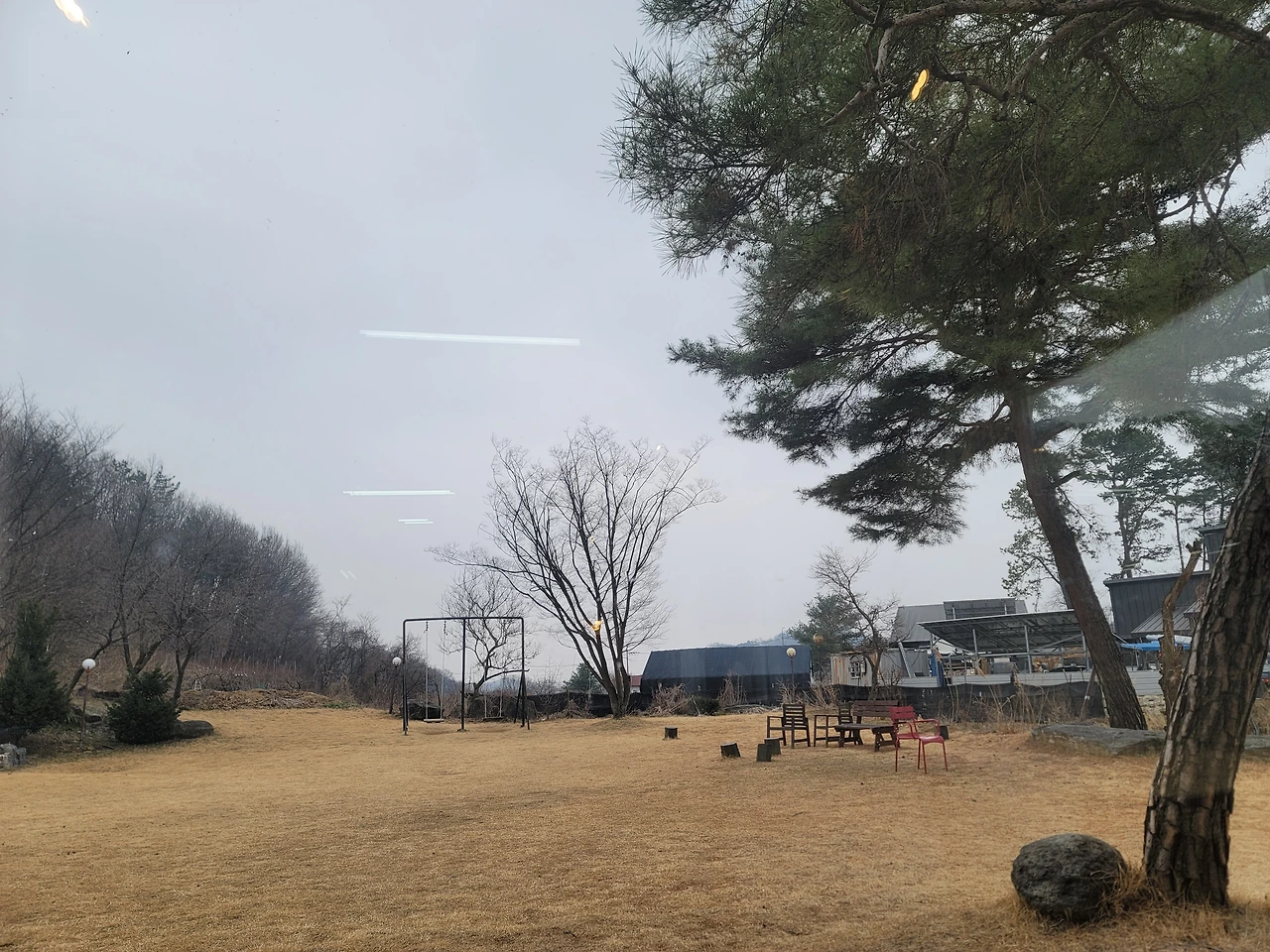 잠시 창가를 보고,