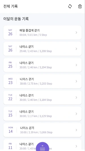 30분 달리기 프로그램과 비슷하게 보통속도 걷기, 빠르게 걷기, 최고속도 걷기를 번갈아가며 인터벌 운동이 가능했다.