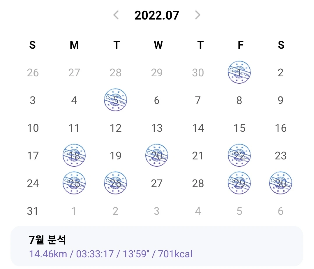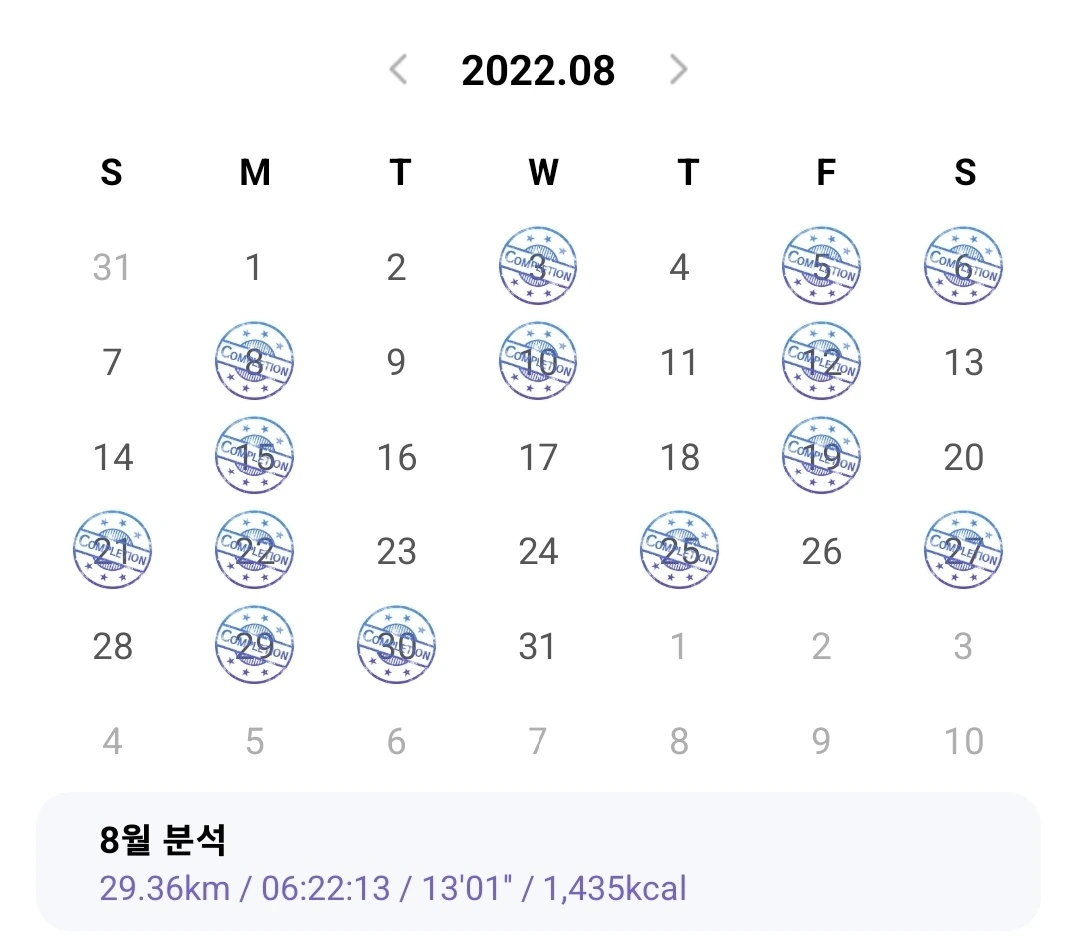 런데이를 통해 일주일에 3번 이상씩 30분씩 달린다.