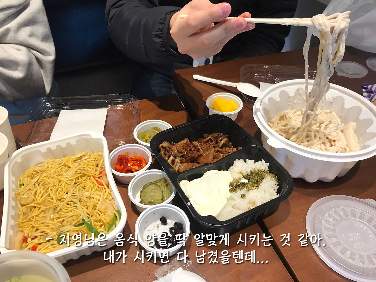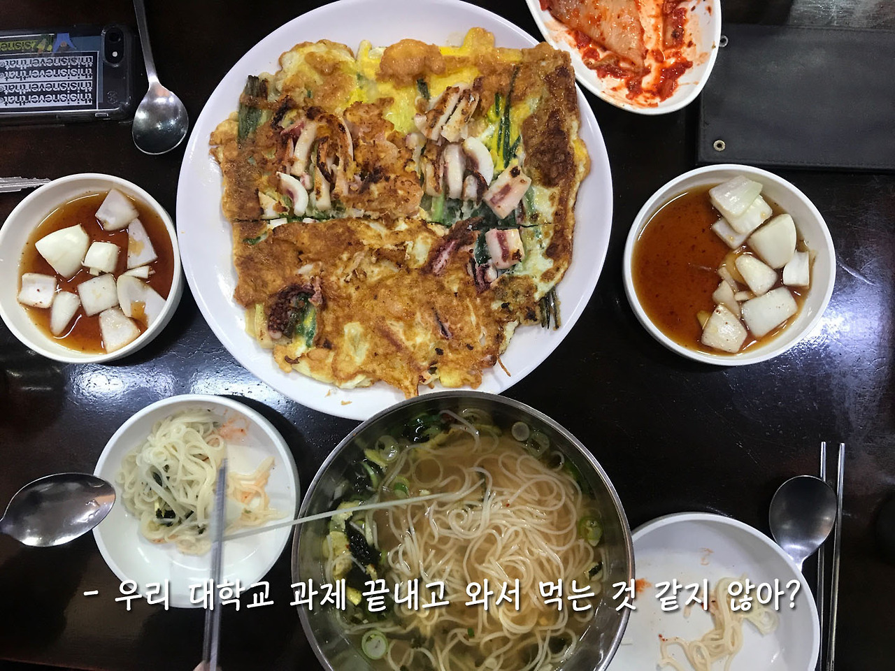"우리 대학교 과제 끝내고 와서 먹는 것 같지 않아?"