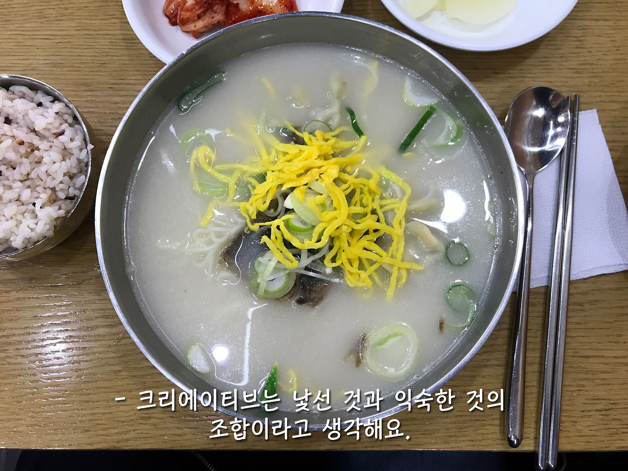 오랜만에 디스패치 친구들하고 밥을 먹었다. 내가 맨날 바쁜 척해서 모이기 쉽지 않지만 만나면 항상 재밌다. 내가 따뜻한 국물을 먹고 싶다고 했더니 친구들이 나주 곰탕에 가자고 했다. 회사 근처에 곰탕집이 있는 줄 몰랐는데 자주 와야겠다.