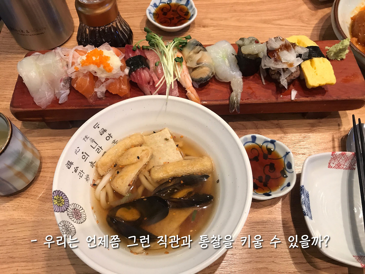 그래서 급 병문안을 가게 되었다. 저녁 시간쯤 병문안을 가게 되어서 선혜 부부와 함께 병원 근처 우동집을 갔다. 이 곳은 응석 오빠가 가장 좋아하는 맛집 중에 하나라고 했다. 을지로 은주정과 수유리 우동집은 정말 믿고 가도 되는 집이라며. (응석 오빠의 맛집 Top2라고 한다.)
